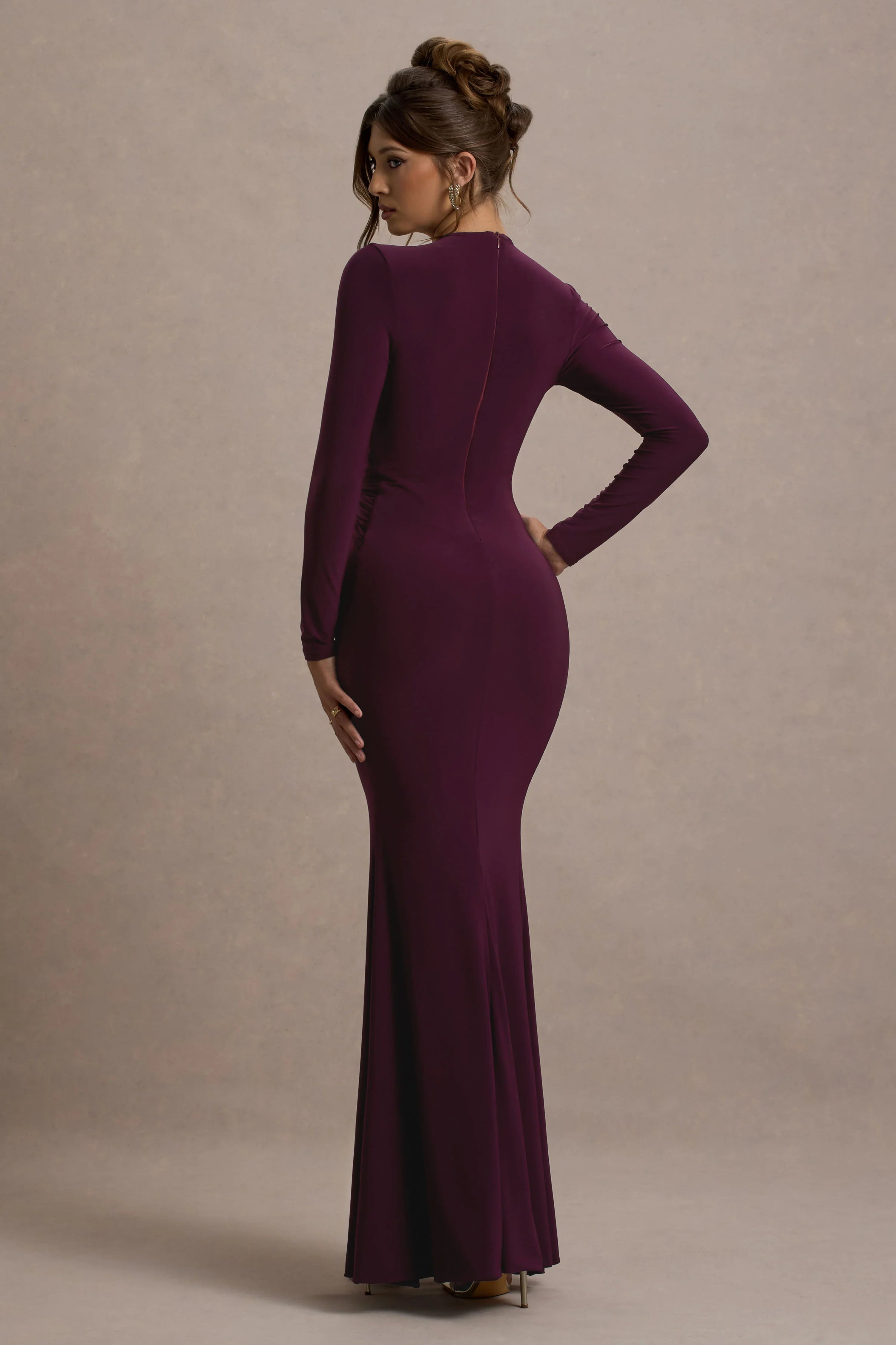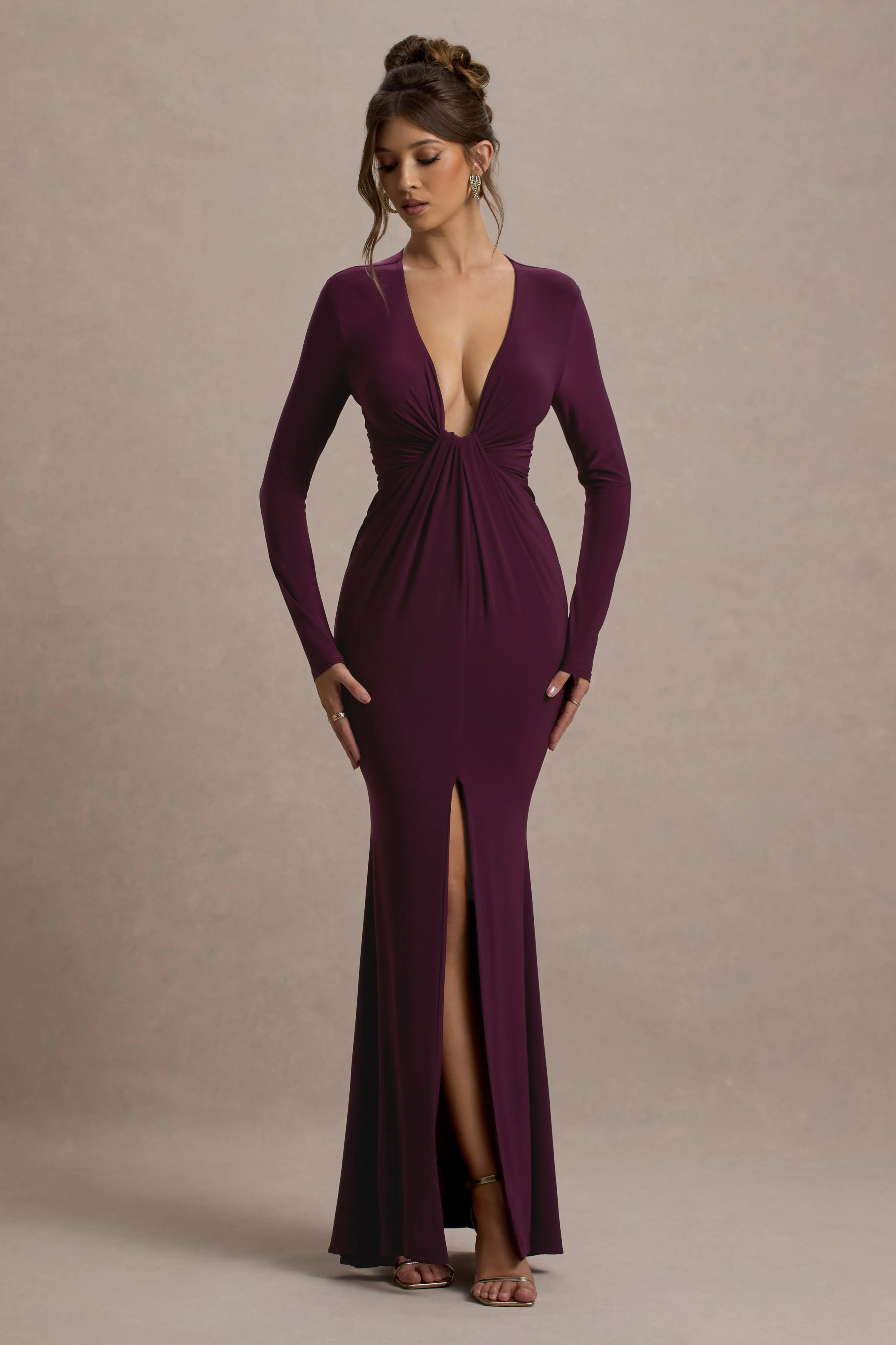 Exude effortless elegance with Aluna, a formal wardrobe must-have. Designed in a premium stretch jersey known for its sculpting capabilities, this plum maxi dress is defined by a curve-hugging knot that carefully cinches your waist. Complete with an alluring high-leg split, Aluna would make an elegant choice for an upcoming wedding event.