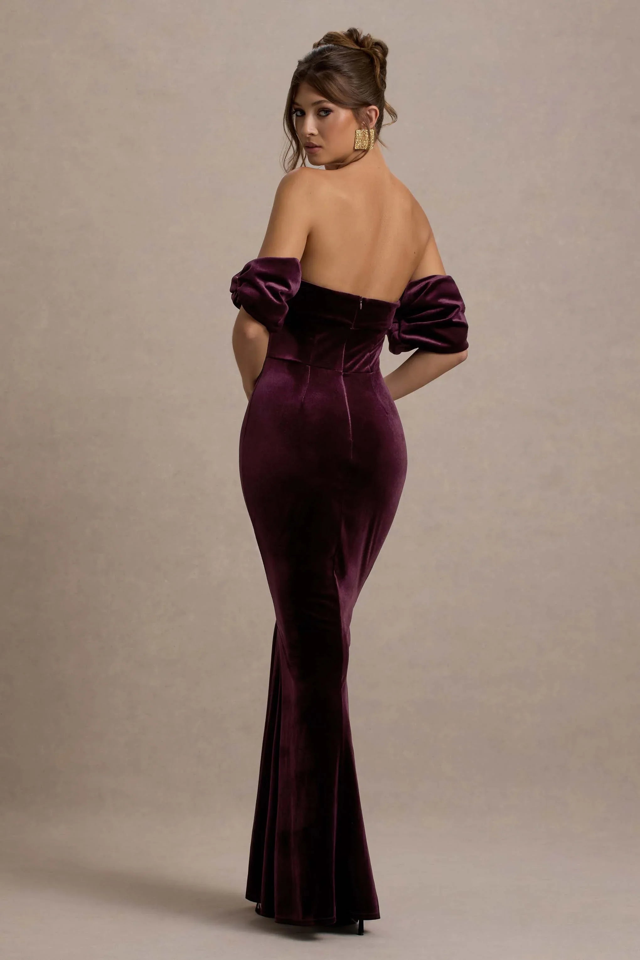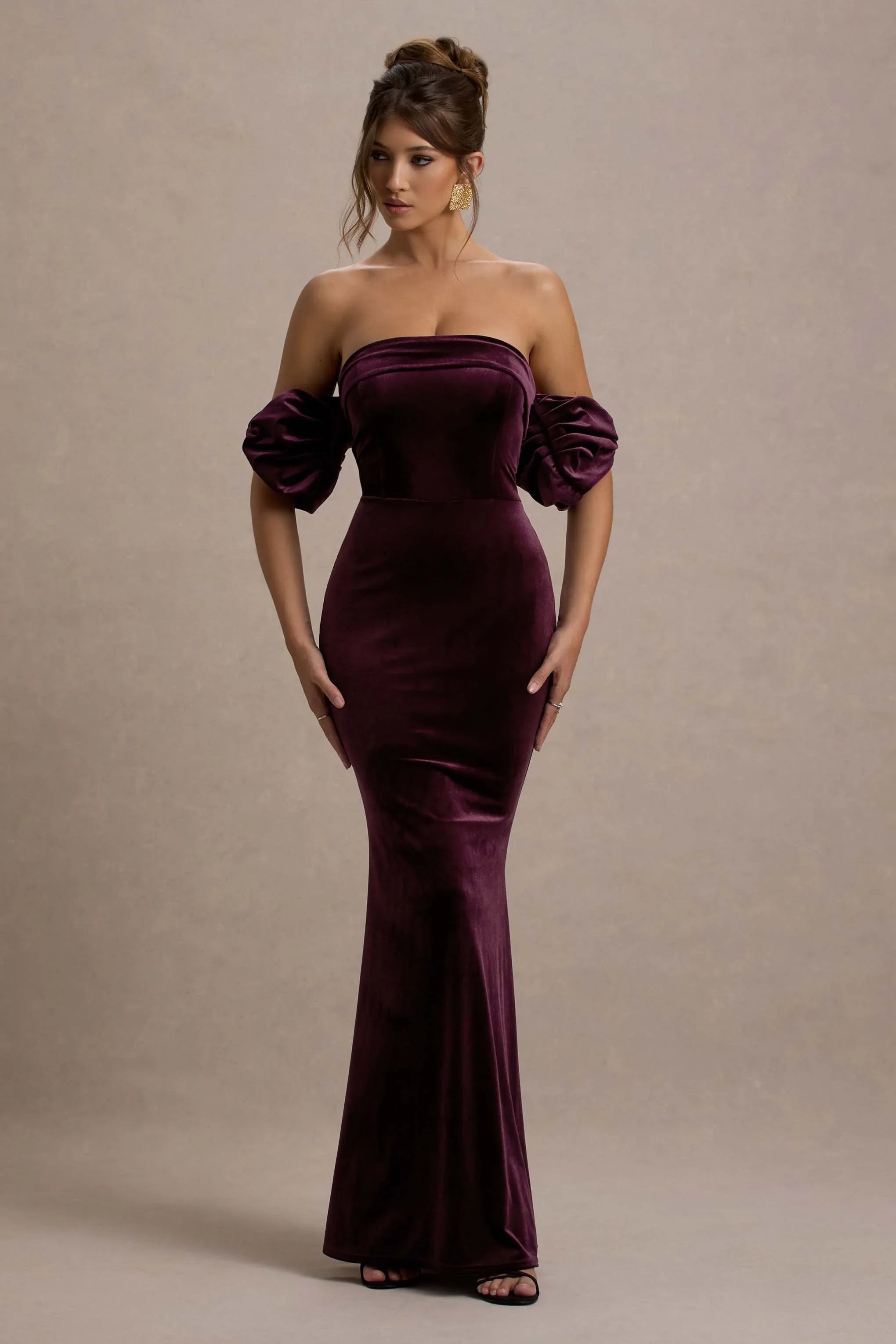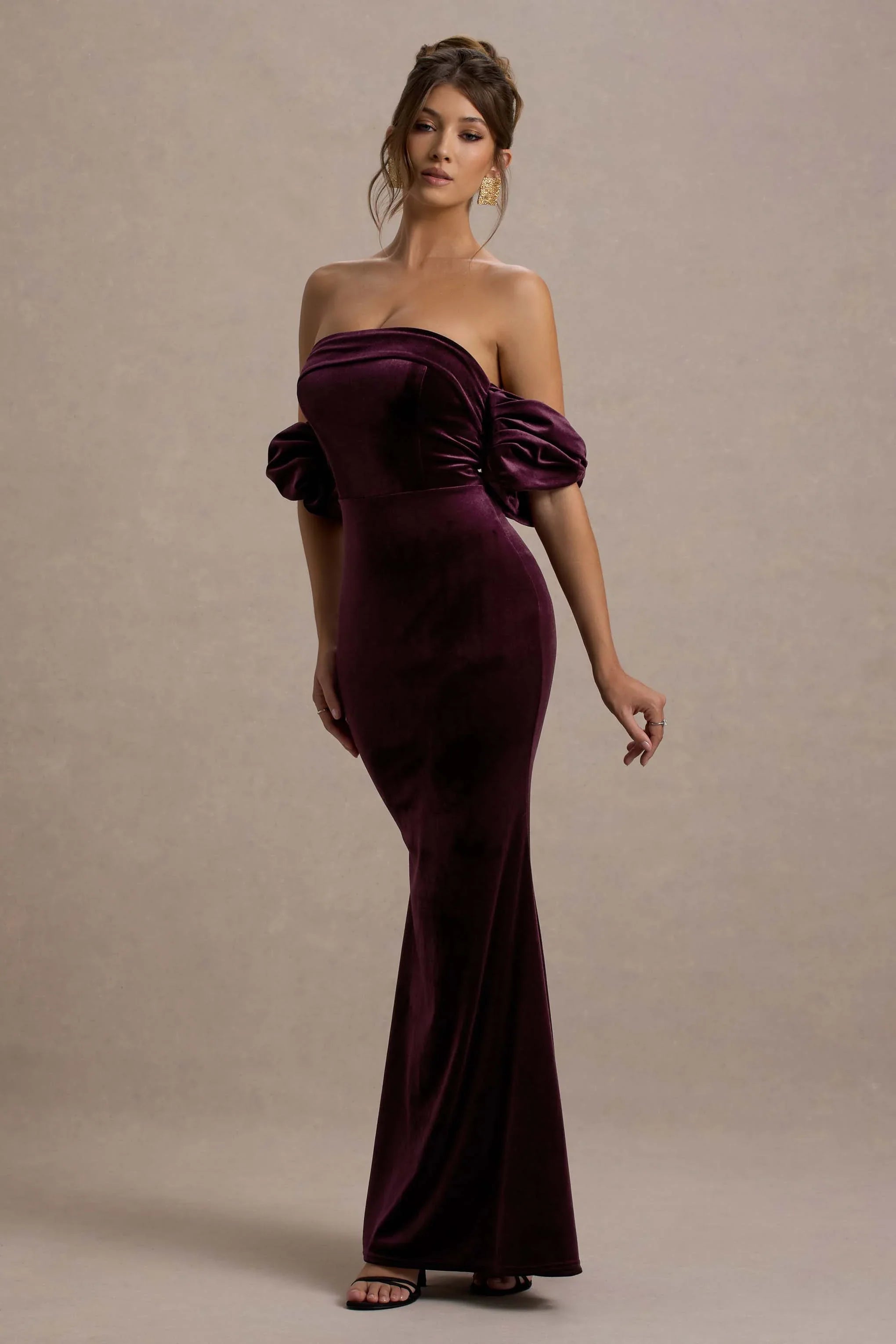 Defined by luxurious fabric and a timeless silhouette, Amandine is your ultimate choice for elegant evenings. Crafted from our premium port velvet, this bardot maxi dress drapes beautifully, highlighting your neckline and shoulders with its off-the-shoulder design. The rich, deep hue and figure-hugging fit bring instant sophistication, while the floor-length silhouette adds a touch of drama.