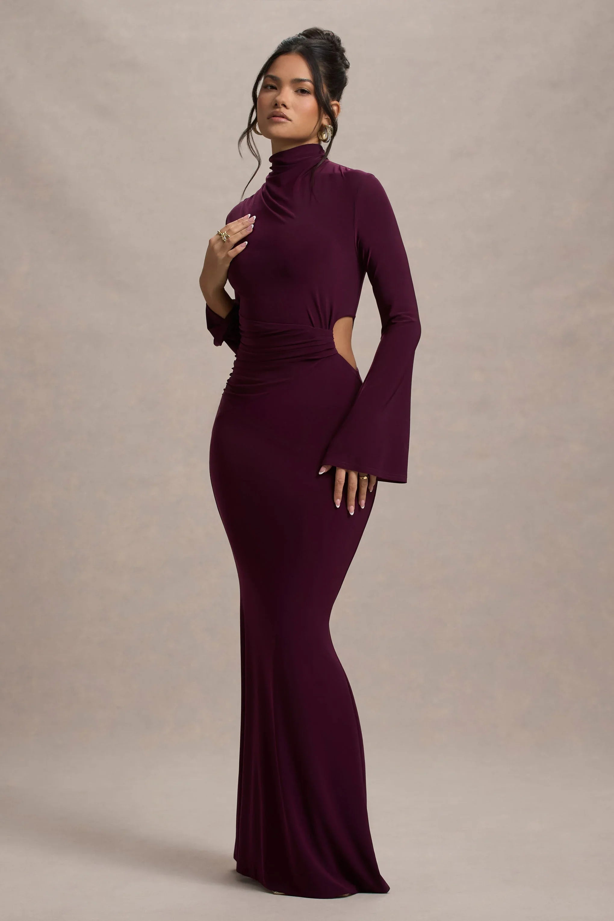 Captivate from all angles in Anderson, our curve-enhancing maxi dress. Expertly designed in our dual-layered jersey, this burgundy gown features strategically placed ruching and a flattering cut-out that effortlessly cinches your waistline. Complete with a gathered high neckline, compliment yours with a tousled bun and some simple hoop earrings.