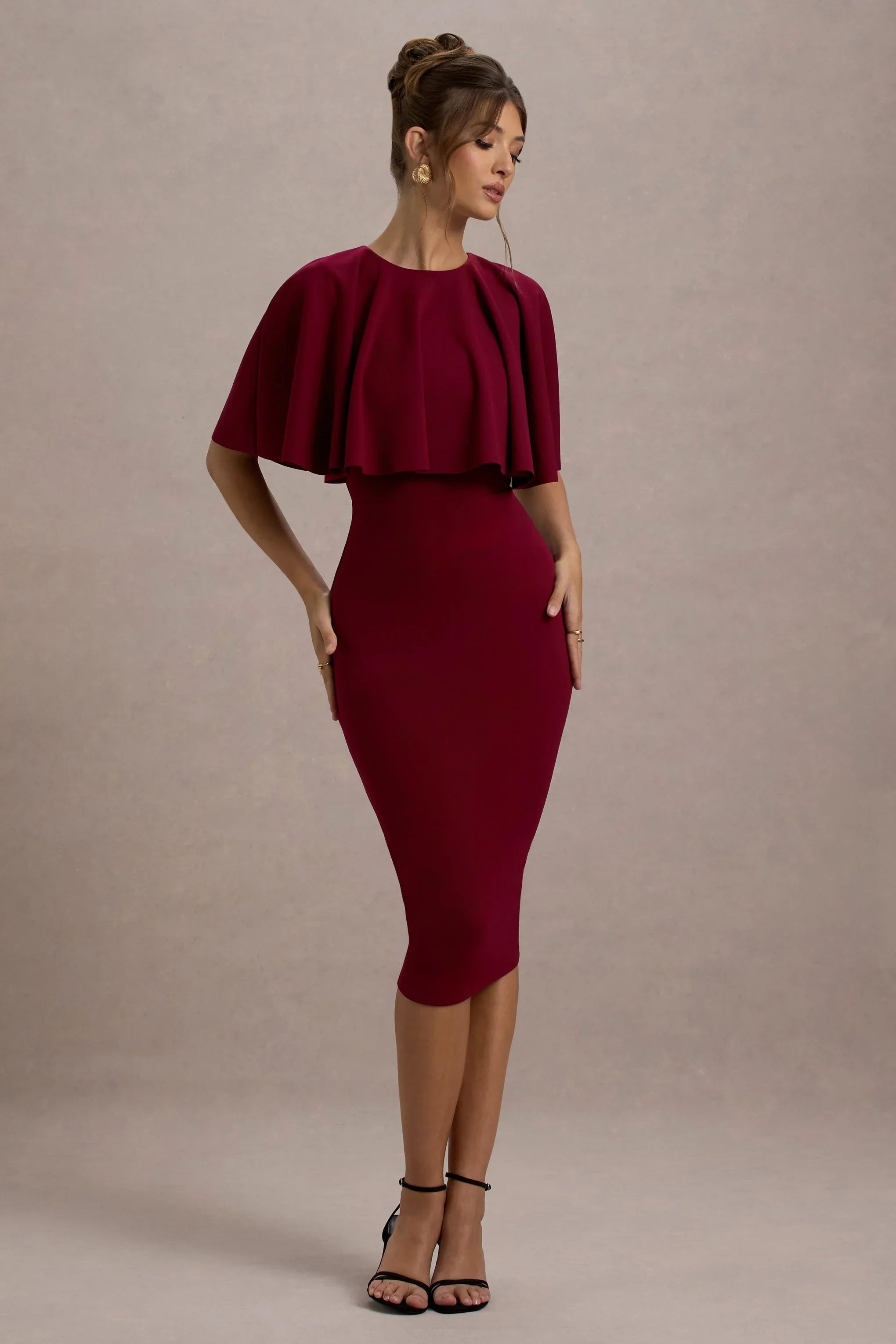Andorra is a bold, show-stopping piece that brings both elegance and edge to your next special occasion. Crafted from our premium scuba crepe, this berry bodycon midi dress hugs your curves, offering a sleek, sculpted fit. The statement cape drapes dramatically over the shoulders, adding a touch of sophistication and movement. Pair Andorran with strappy heels to keep this striking dress at the forefront of your event-ready look.