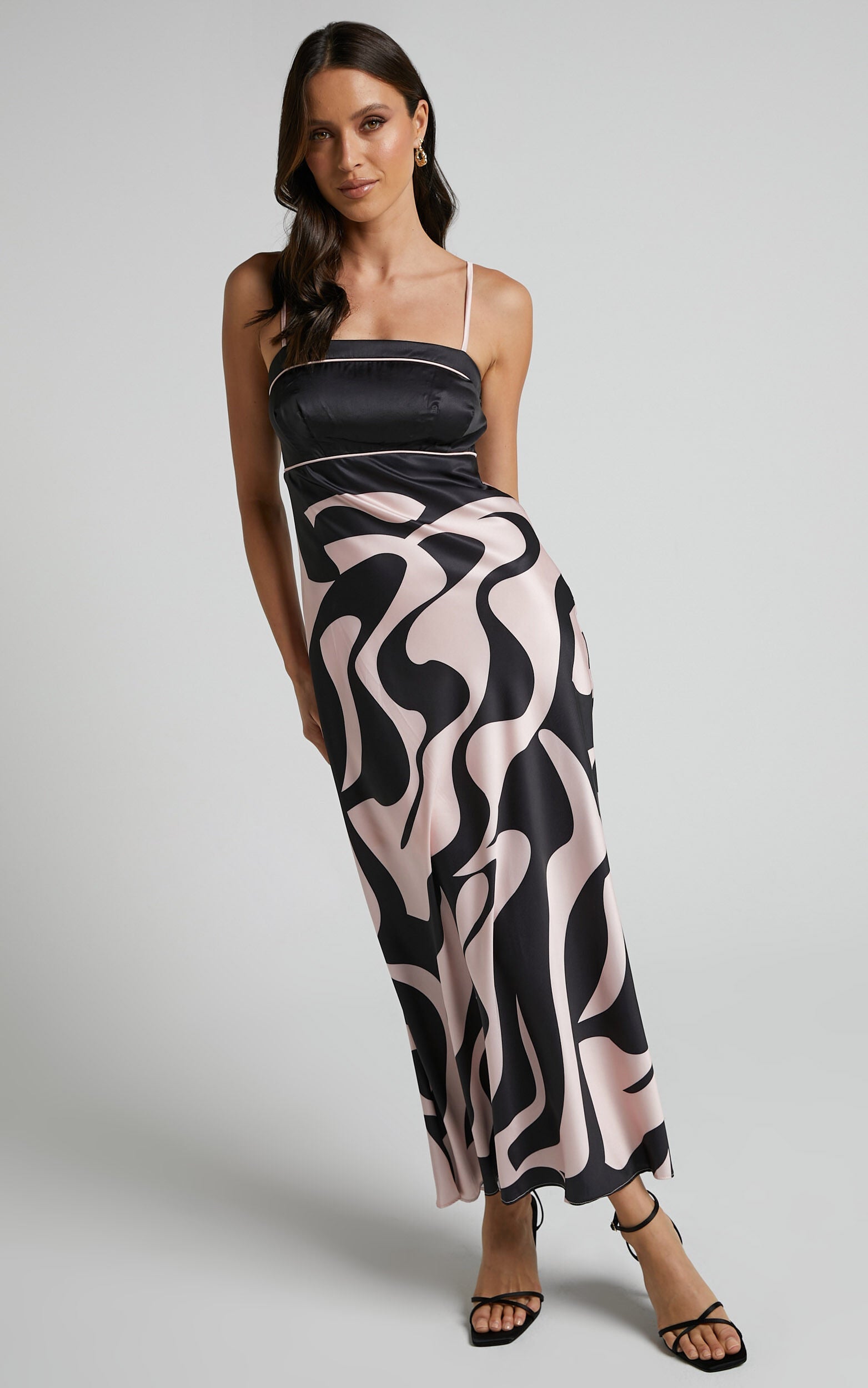 Get ready to turn heads in the Angela Midi Dress - Thin Strap A Line Dress In Black & Cream Swirl. This stunning black and cream swirl patterned dress is perfect for any occasion, whether it's a cocktail party or a night out with friends. The A-line silhouette flatters every body shape, while the midi length adds an elegant touch. Made from high-quality polyester, this sleeveless dress feels as good as it looks. Embrace your individuality and show off your style in this empowering piece from Pinklilyp's collection of dresses.