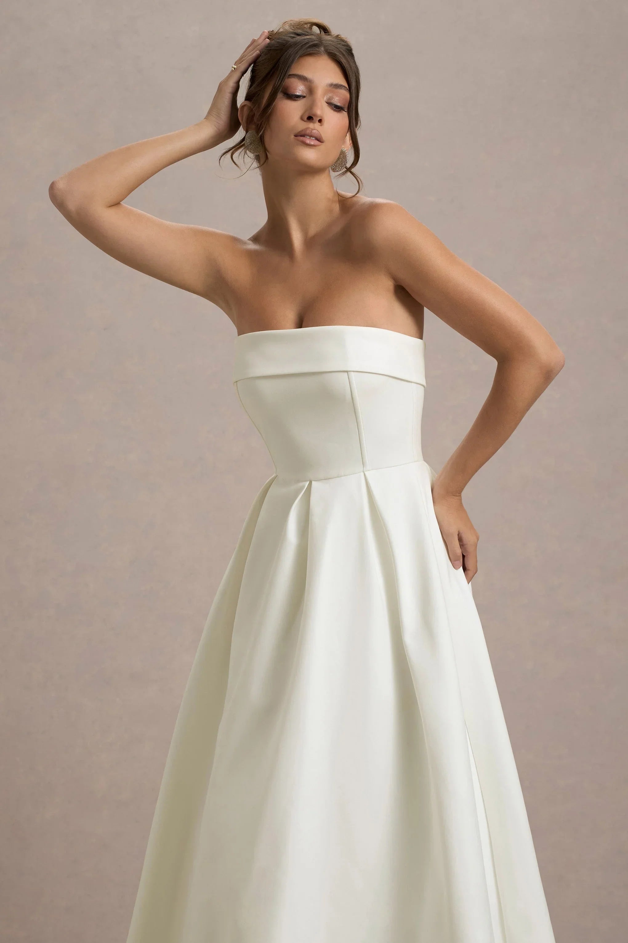 You name the occasion, we have the perfect dress. Crafted in an ecru shade of our premium stretch crepe, Annalise effortlessly compliments every skin tone. Beautifully flowing with a cinched in waist, this midi dress boasts a pleated skirt that creates an elegant sense of movement. For a timeless race day look, try styling yours with some simple gold earrings and strappy stilettos.