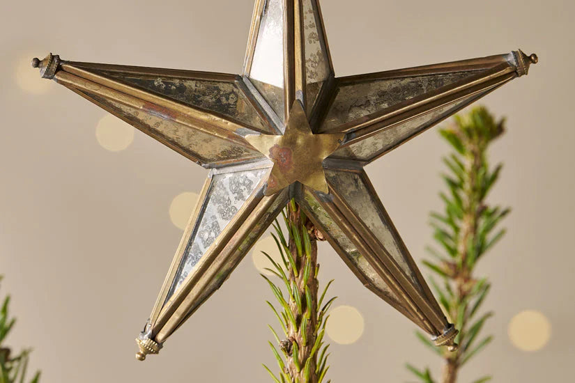 This stunning Bakara Star tree topper looks exquisite at the top of the tree. Each one is hand forged from brass in this intricate star design, the mirrored glass adds an elegant antique look.