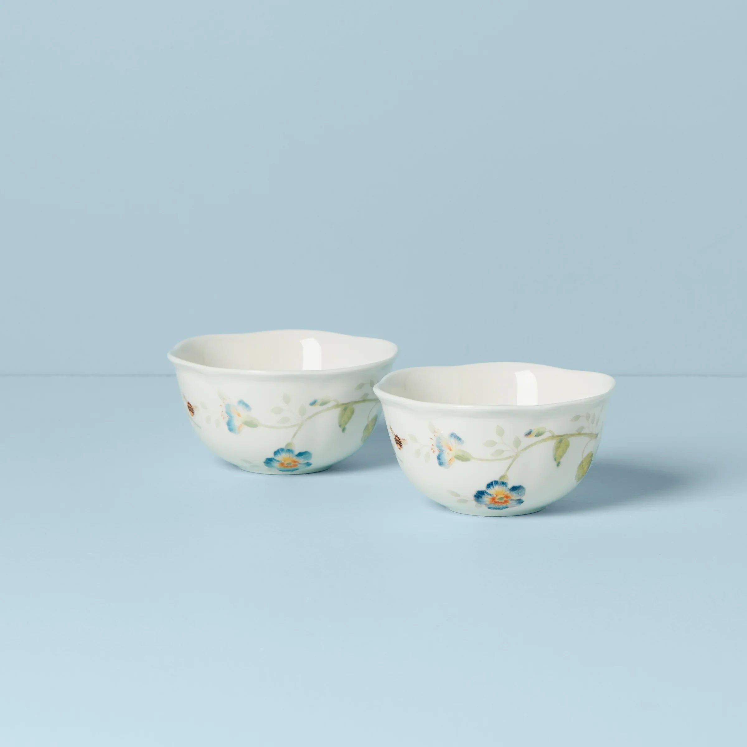 The classic Butterfly Meadow design decorates and shapes this durable, 2-piece porcelain dessert bowl set with a gently scalloped rim and lively garden illustrations. These dishwasher and microwave-safe bowls make a charming addition to any table setting.