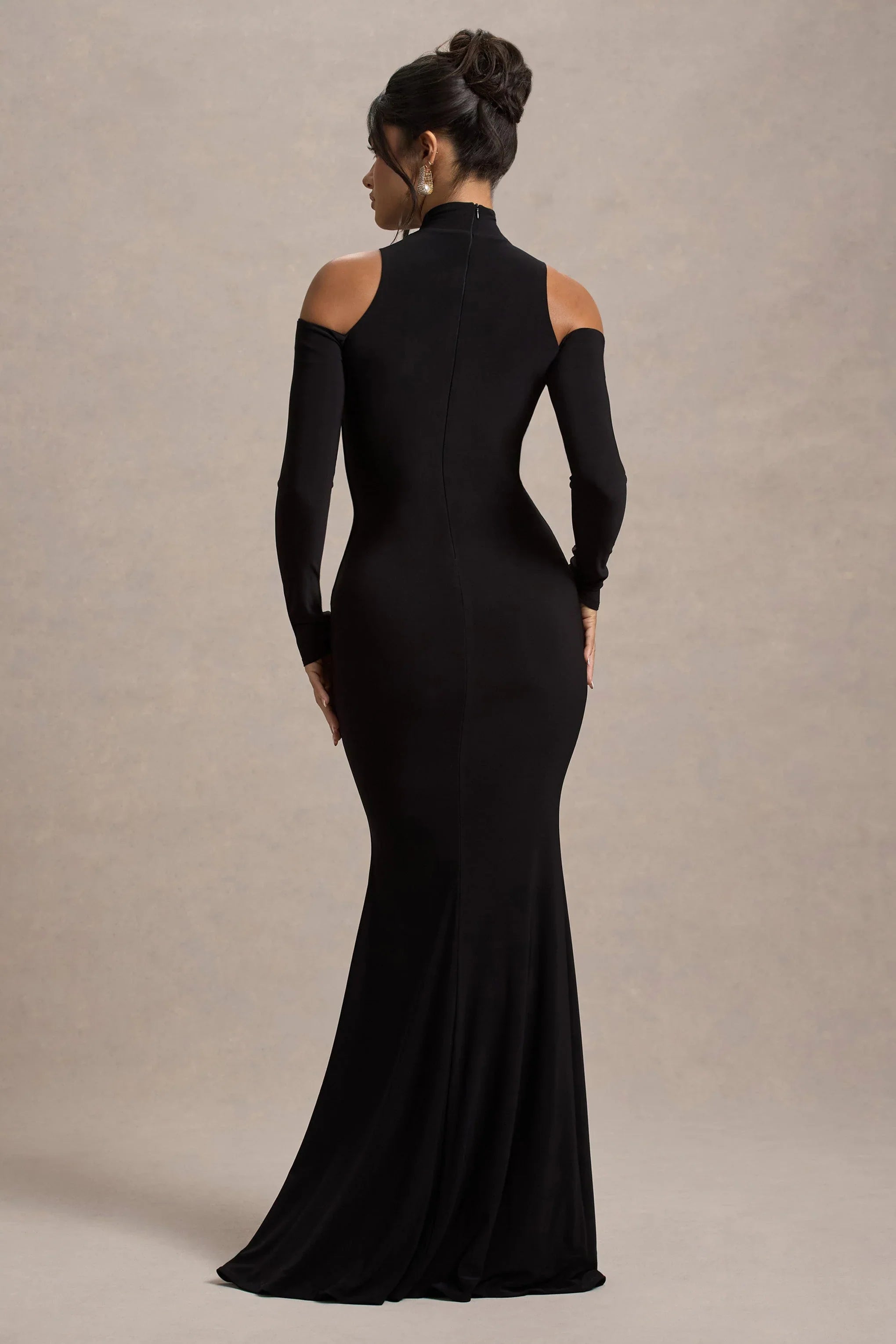 Defined by its sleek lines and unexpected details, Catarina is a striking choice for your next event. Crafted from our premium jersey, this black turtleneck maxi dress offers a refined silhouette that effortlessly flatters. The long sleeves provide a polished look, while the cold shoulder cut outs introduce a modern edge, adding a hint of allure. Perfect for a sophisticated evening out, keep Catarina in the spotlight with minimalist jewellery and bold heels for a look that's both understated and unforgettable.