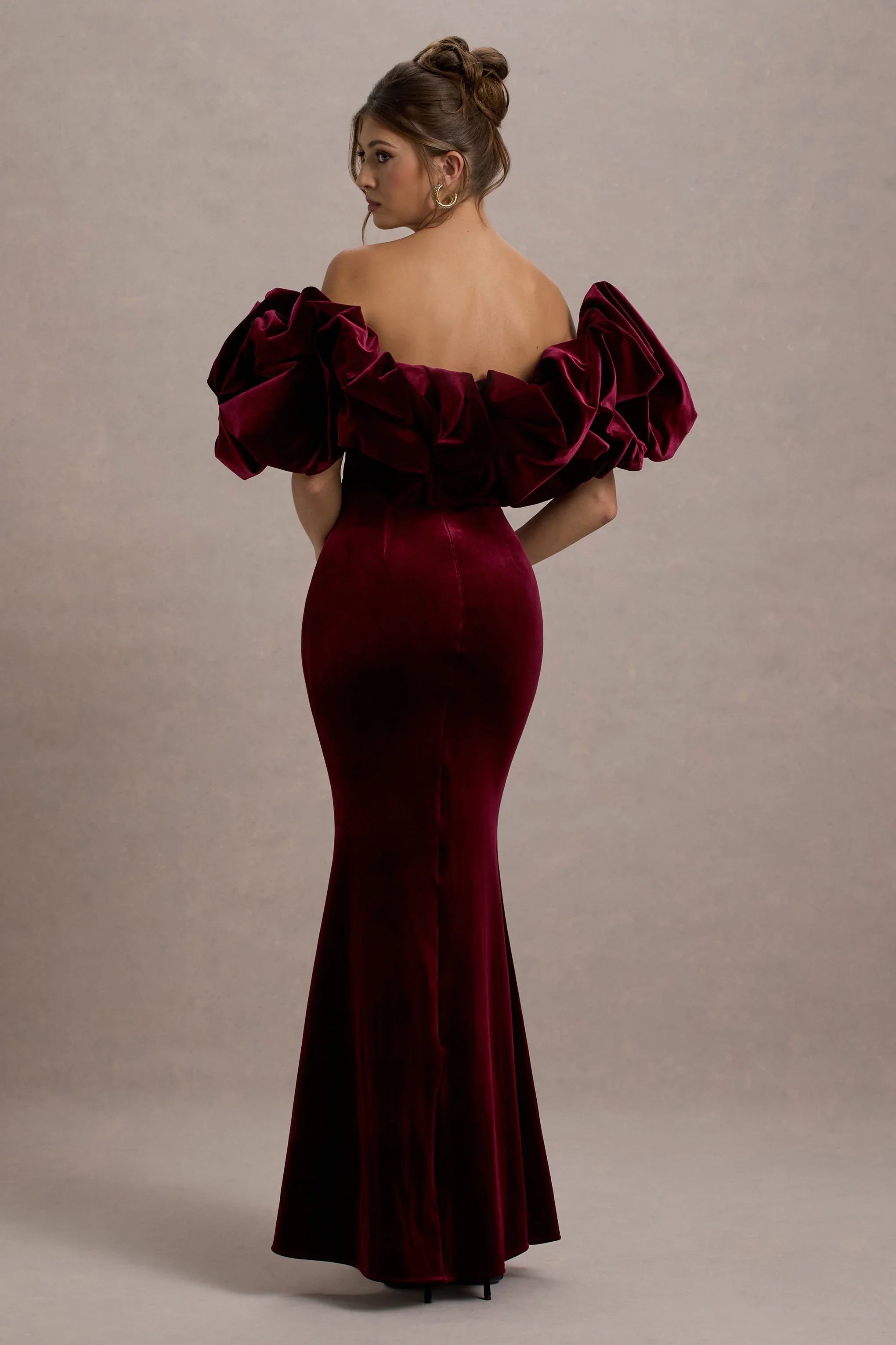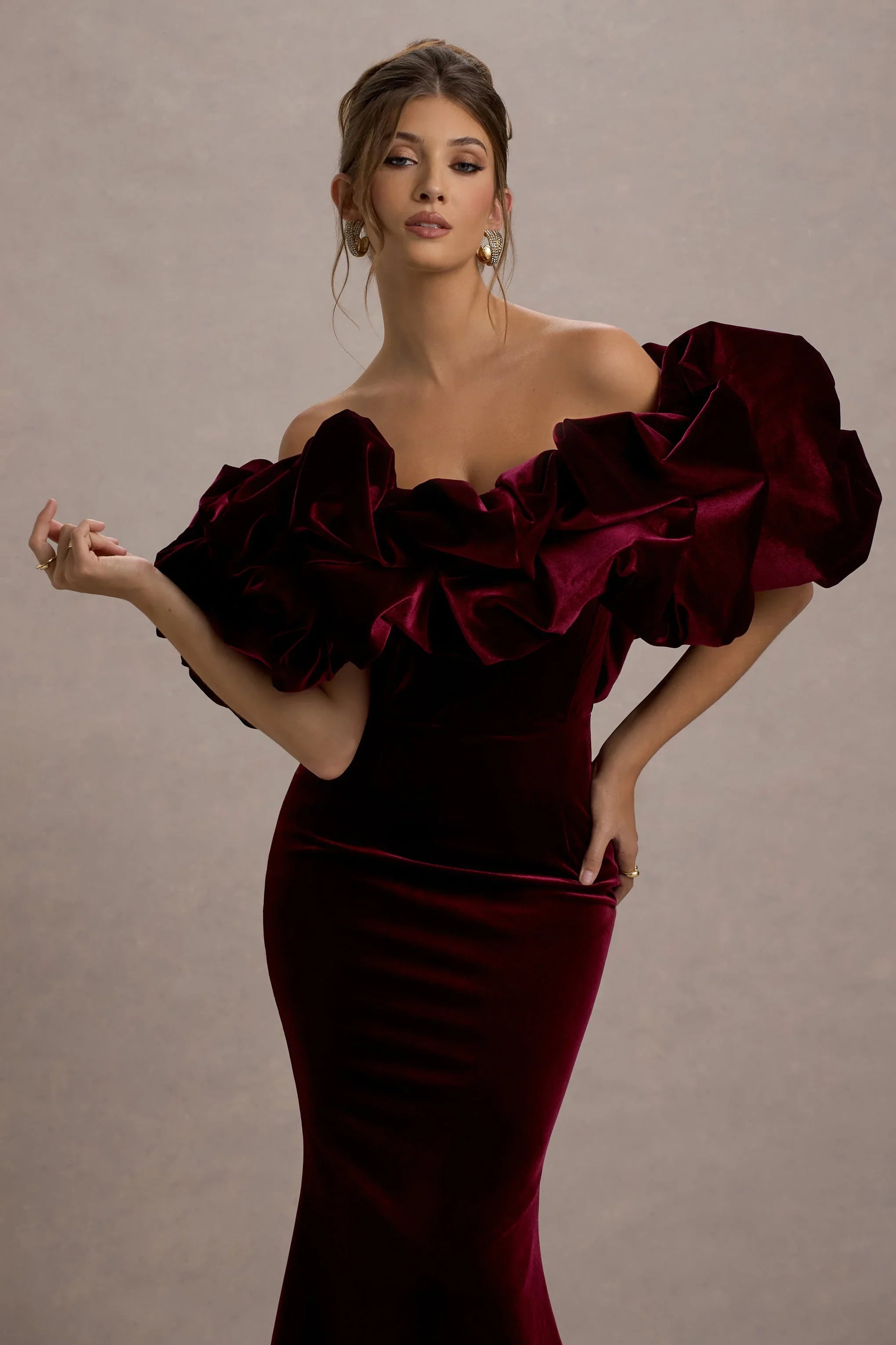 Black tie events call for a dress like Cecily. Expertly crafted in our luxurious red velvet, this floor-sweeper oozes elegance through a contrasting cream neckline designed from our premium ruffled satin. Compliment Cecily with a sultry red lip and ivory court heels like Catcher for your next gala.