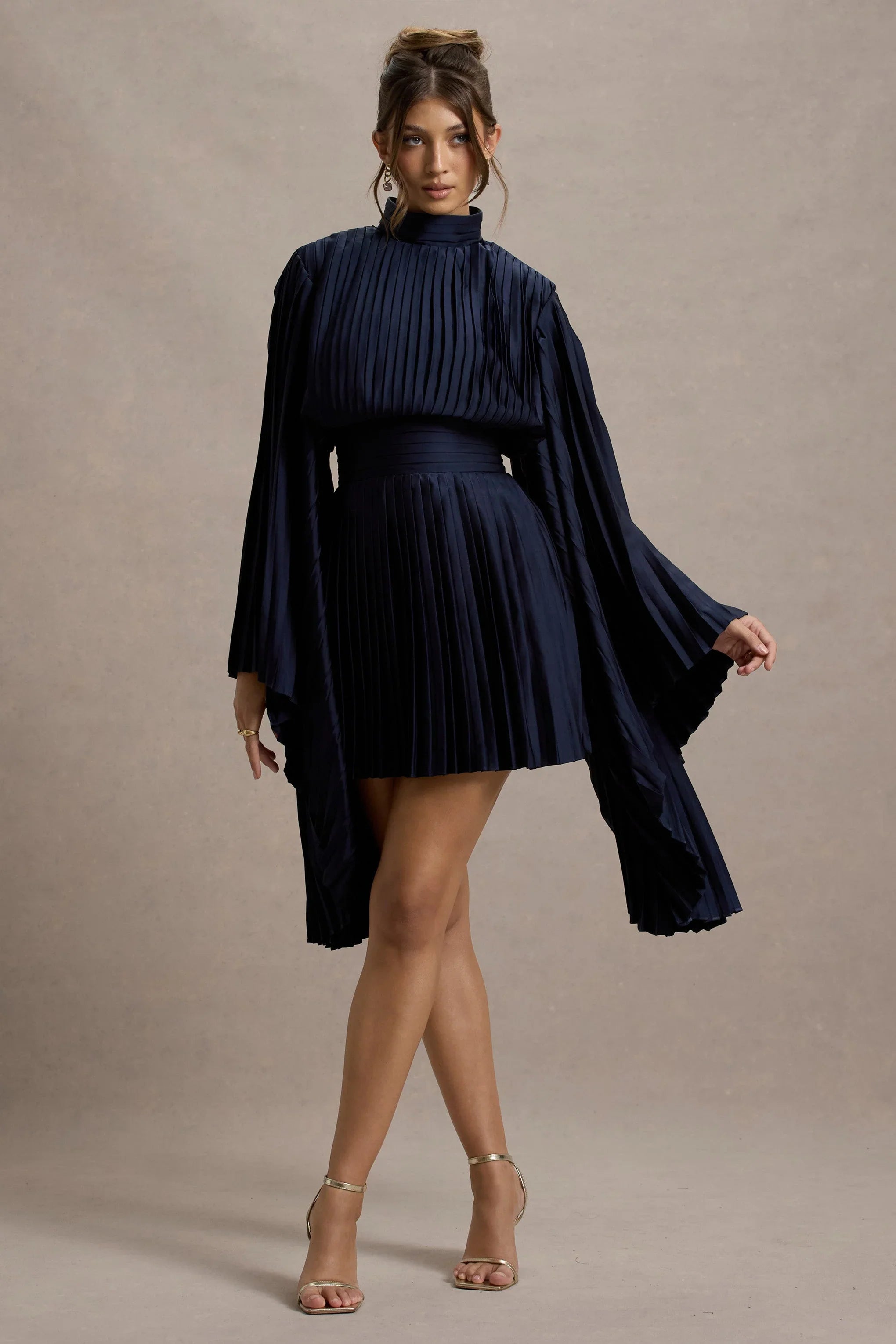 Exude an angelic look in Charity, our latest navy mini dress. Expertly crafted in a premium satin, Charity has been pleated to perfection boasting a high-neck and ethereal cape sleeves creating movement. Keep Charity at the forefront this occasion season by styling with some simple strappy stilettos.