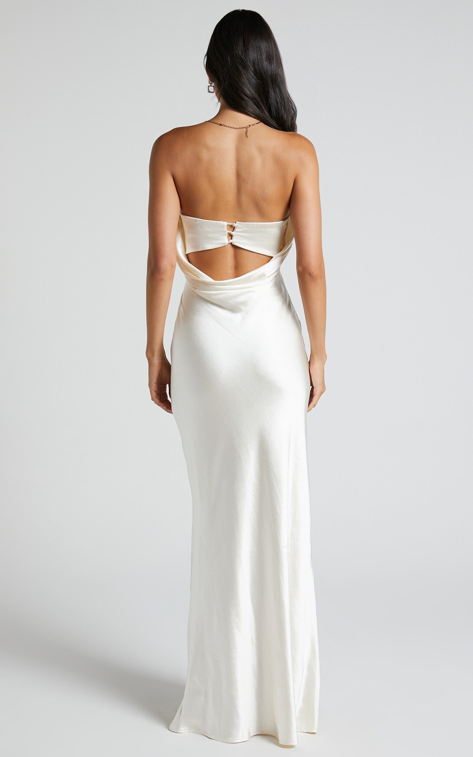 Our Charlita Dress is serving refined glamour and we're totally here for it! This sumptuous full-length number has a sleek strapless silhouette, draped cowl back feature and satin-like finish. It's a timeless and elevated piece that will suit so many special events - from formals to weddings.?Style it with drop earrings and high heels to bring the look together!