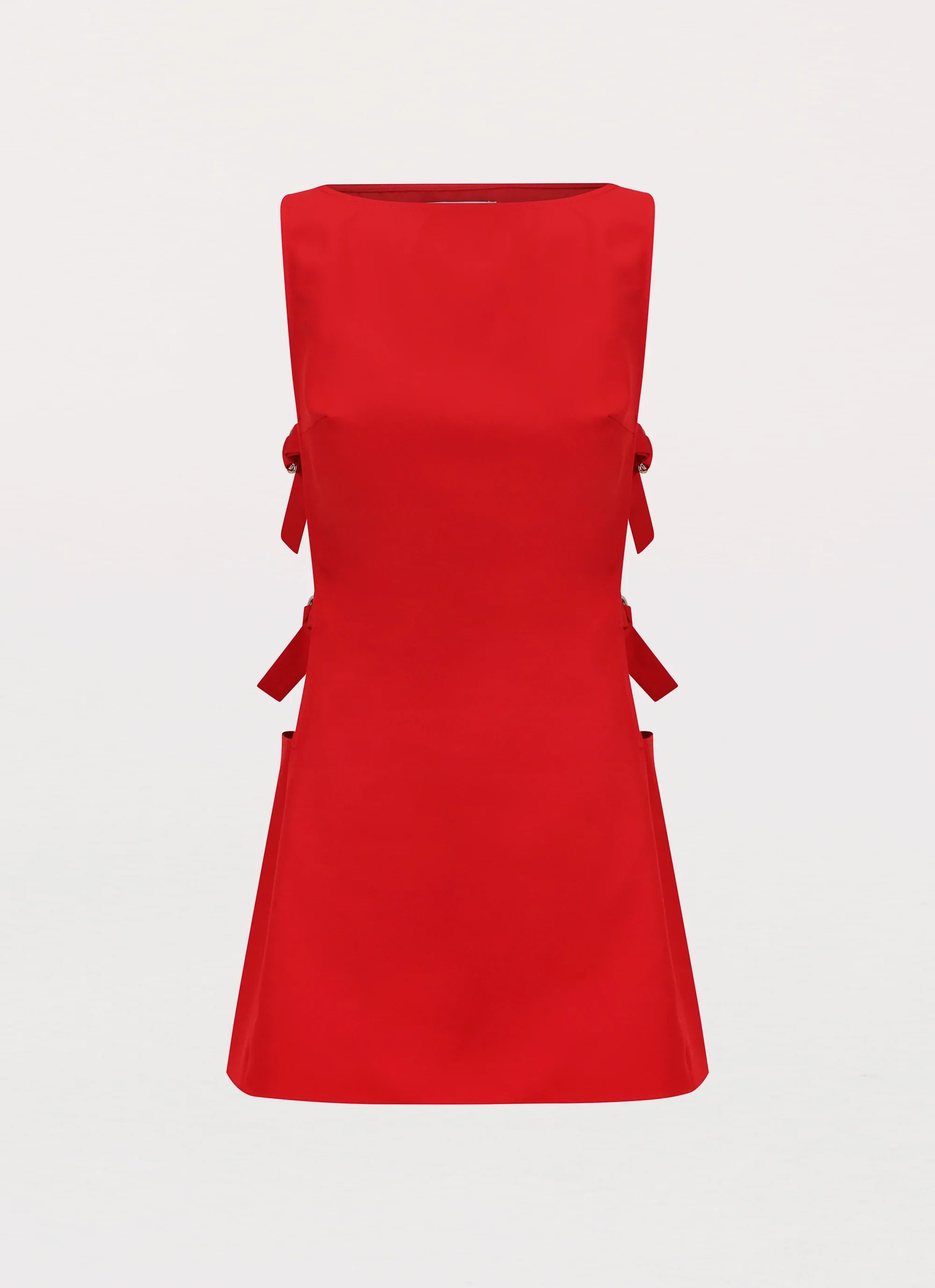 Stand out in red this Valentine's Day with the Cherish You Buckle Mini Dress! Featuring a high neck with a stylish buckle detail and a flirtatious cut-out design. it's the perfect choice for a statement look. Pair with slip-on heels and your favourite accessories for a captivating ensemble.