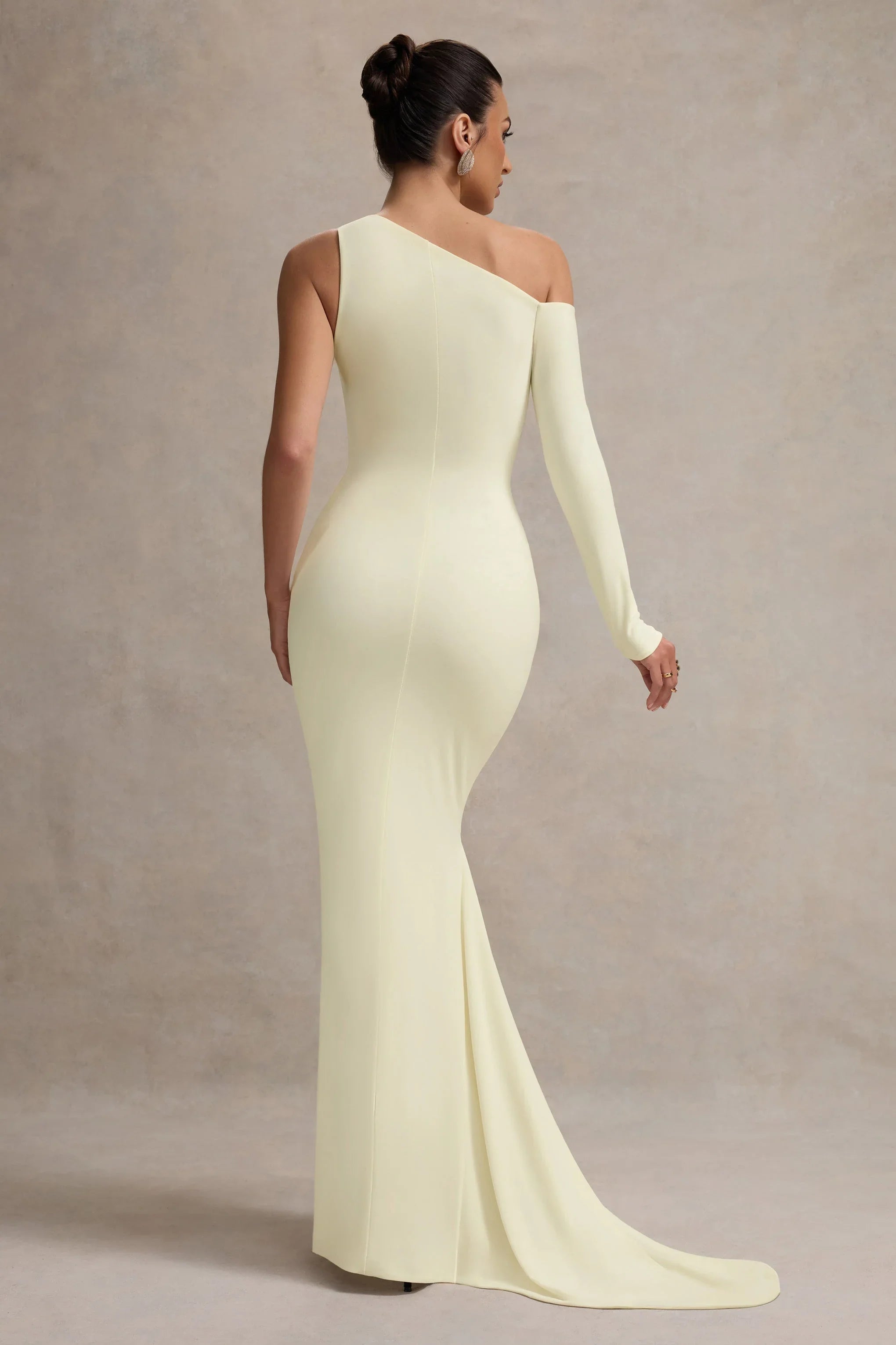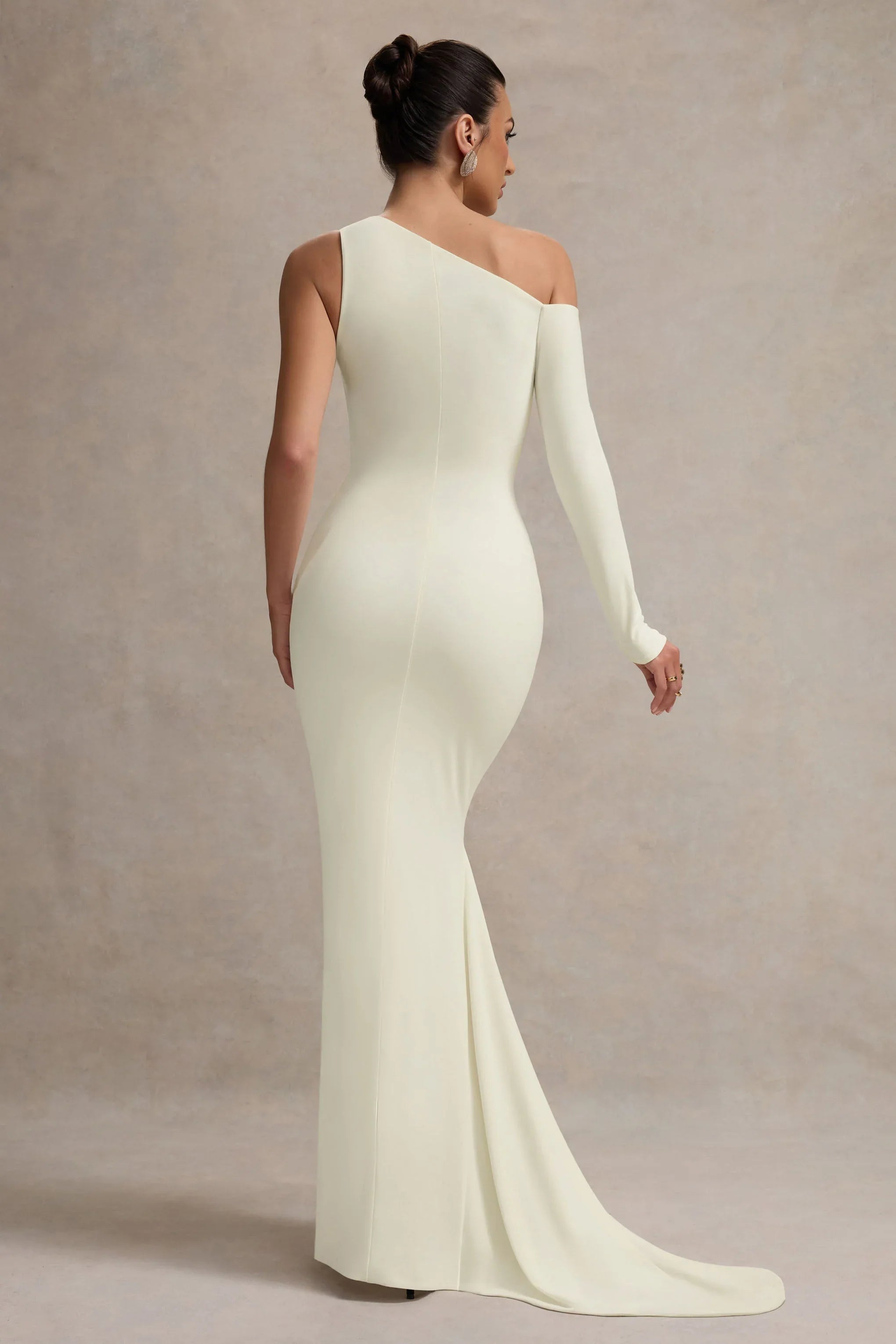Turn your attention to Contradiction, our asymmetric maxi dress. Crafted in our signature dual-layered jersey, this curve-accentuating piece was made with your comfort at the forefront. For an elegant ensemble, pair this cream dress with some gold accents.