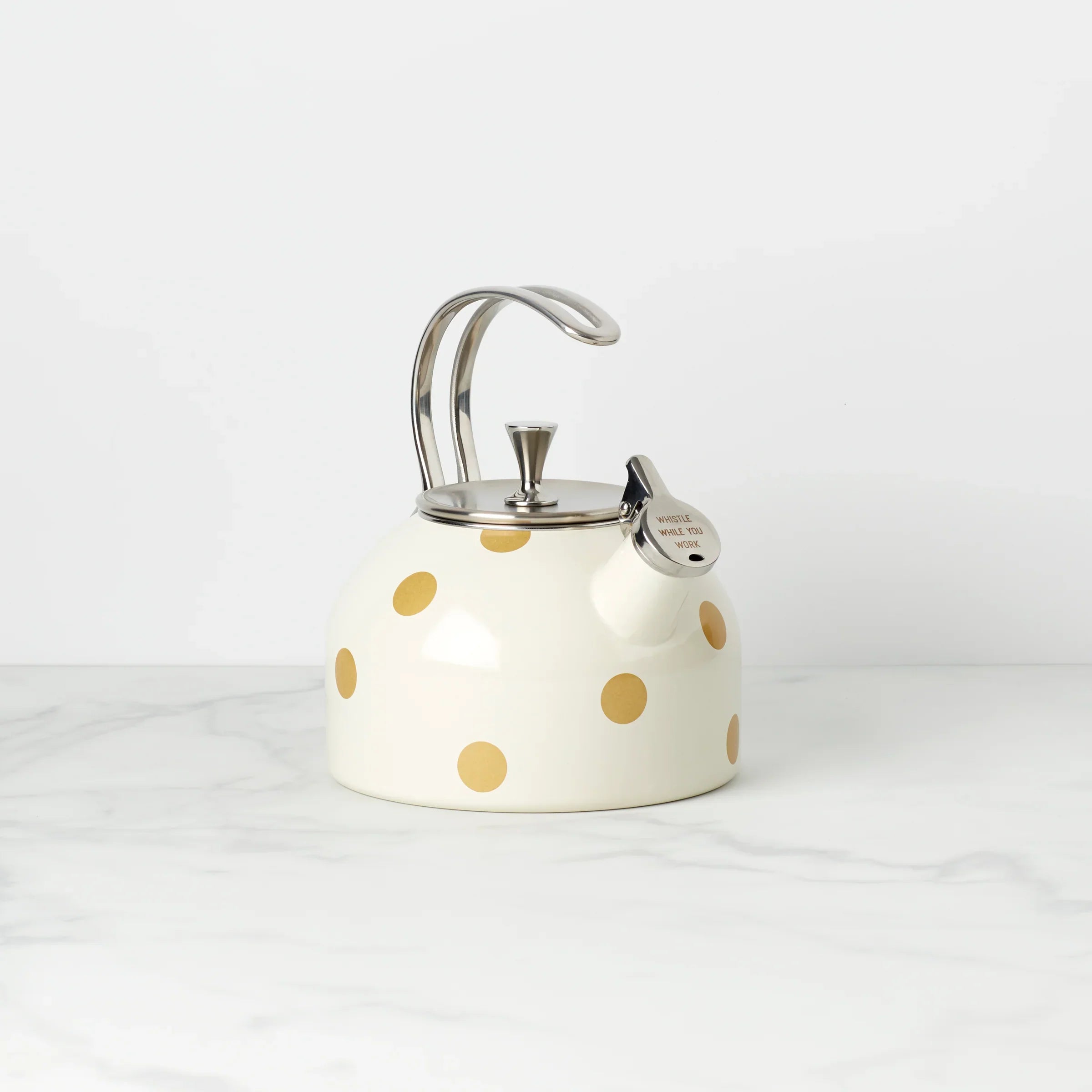 Decorated with a smattering of polka dots, this pretty tea kettle by kate spade new york is equal parts playful and chic It's crafted from durable enamelware and stainless steel so you can use it again and again (and again...)