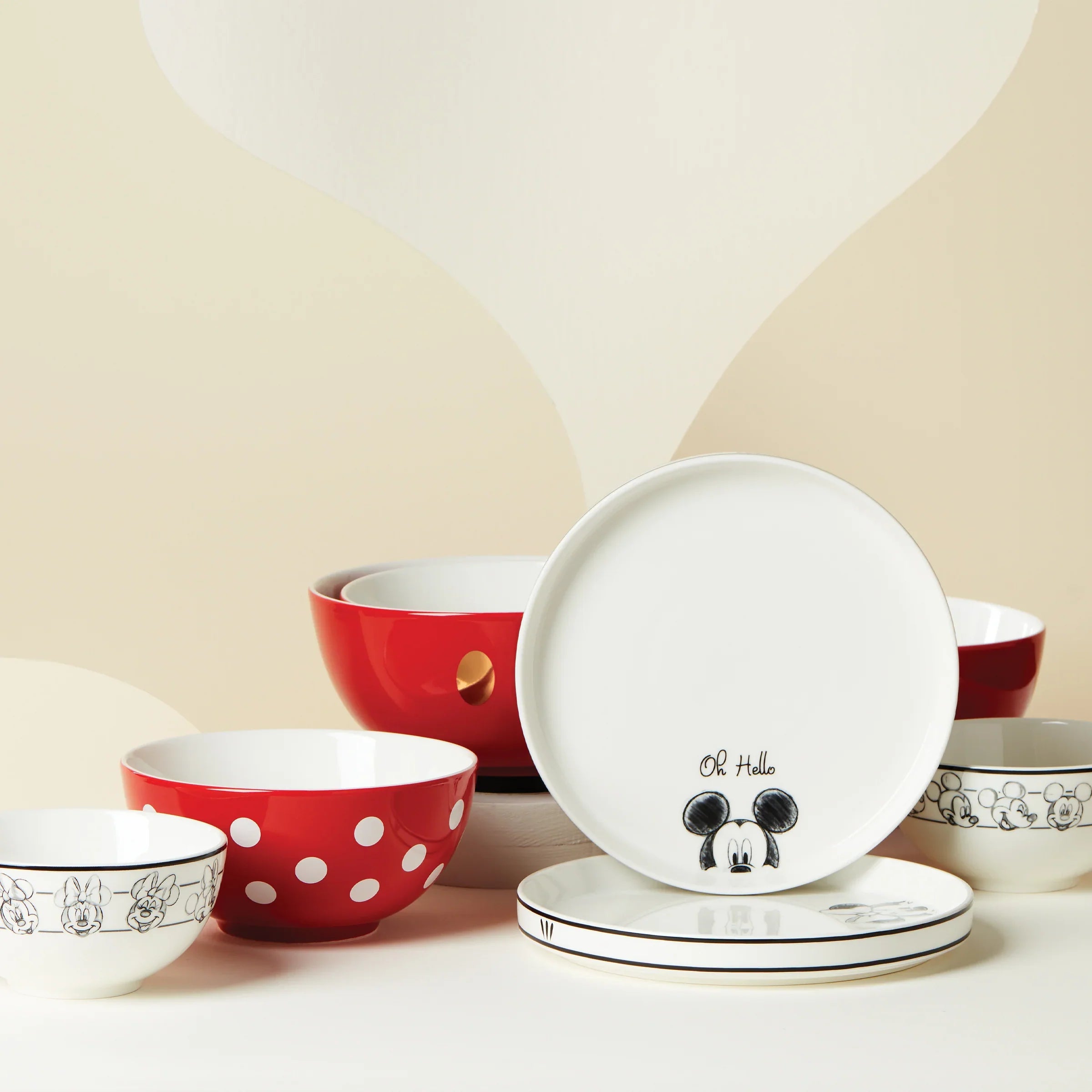 Hidden treasures are all around! Peek inside this breathtaking set of Disney dinnerware for a glimpse at the magic our nested 8-piece Luna could invite to your next family gathering! Crafted to remind you of your favorite mouse, featuring an iconic color palette and memorable design.