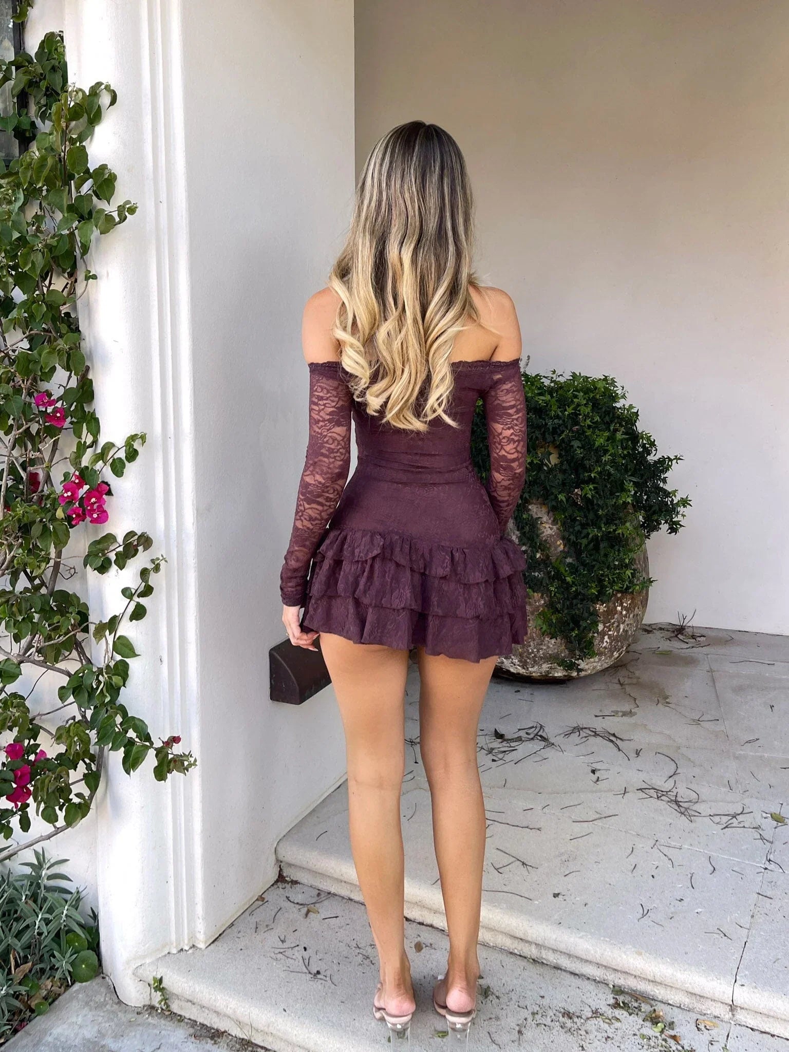 Introducing our stunning 'Emerson Mini Dress' in Dark Mauve!