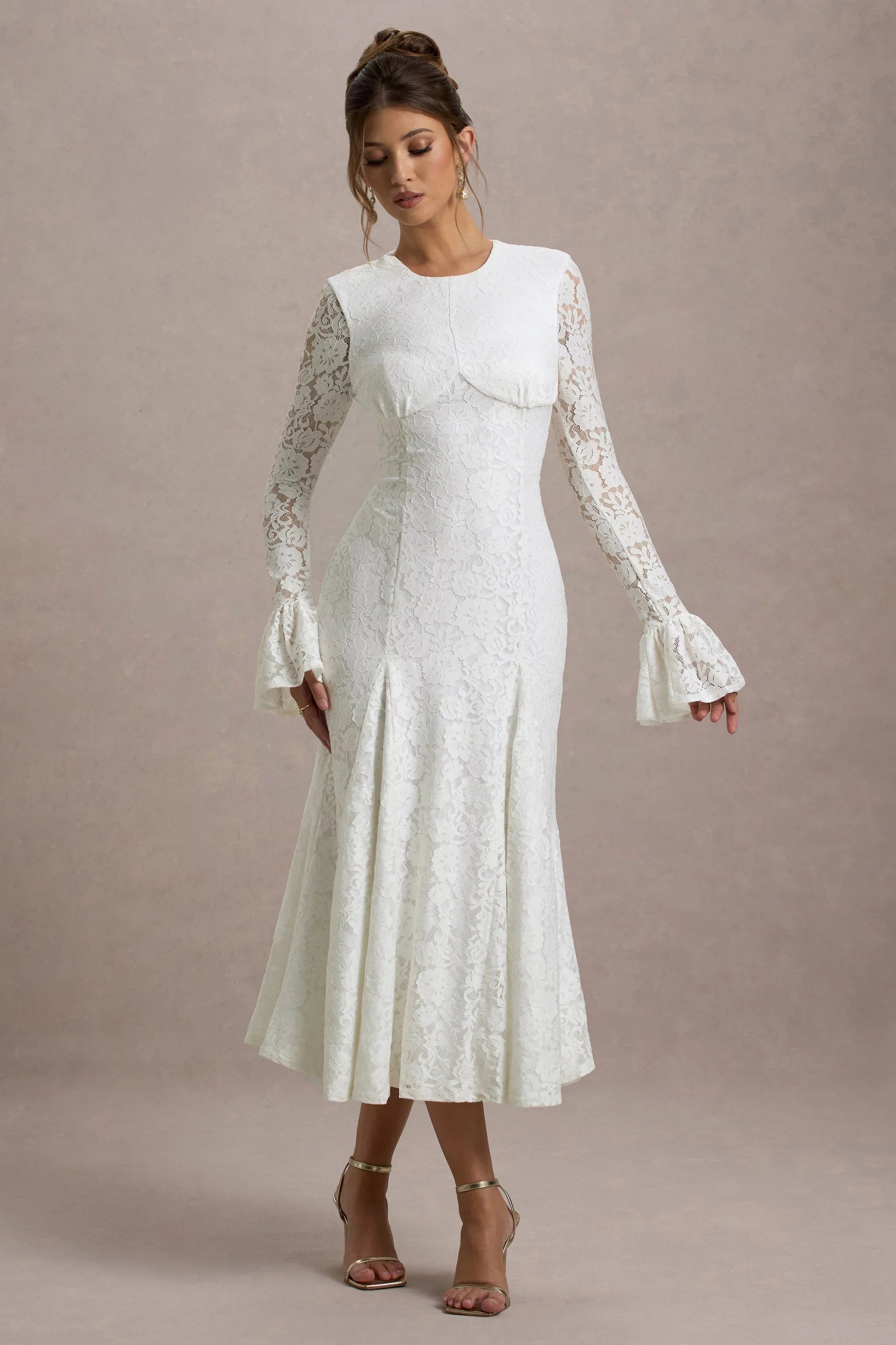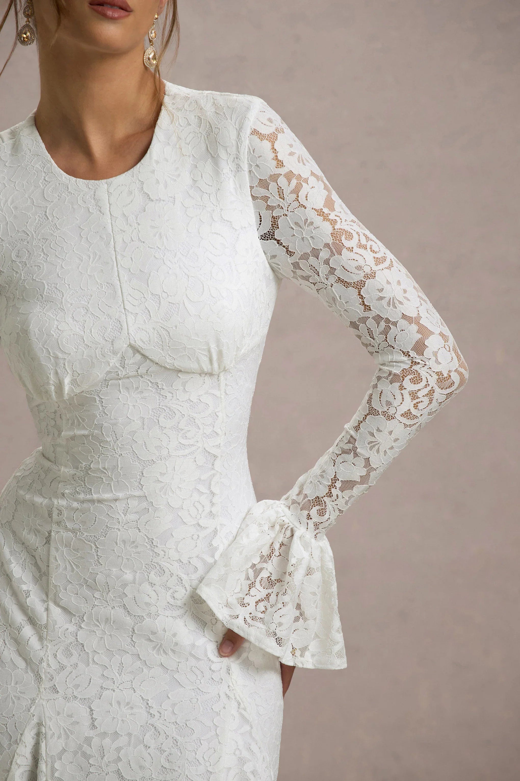 Defined by timeless elegance and intricate craftsmanship, For Life is the ultimate statement piece for your most memorable occasions. Made from our premium lace, this cream long-sleeve midi dress features delicate patterns that create an alluring contrast against the skin. The sophisticated silhouette is enhanced by its subtle sheer sleeves, bringing just the right amount of drama. For Life pairs perfectly with a sleek clutch and classic pumps for a look that exudes confidence and grace.
