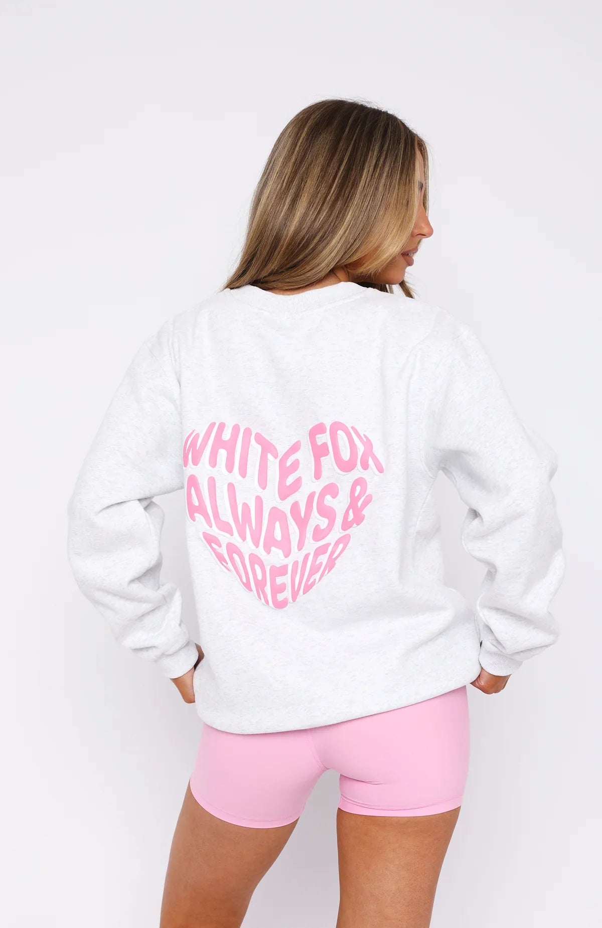 Fall in-love with the Head Over Heart Oversized Sweater Grey Marle! Features an oversized fit, a high scooped neckline, ribbed neckline, cuffs and hem, puff print logo side front and centre back and super soft fleece lining for extra comfort. Team with pink bike shorts and sneakers for the cutest Sunday morning fit'.