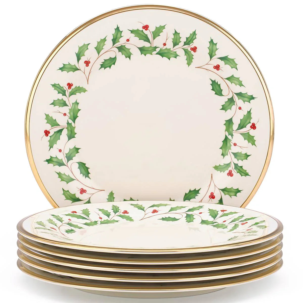 The Lenox Holiday dinnerware collection has been part of holiday celebrations for generations. This Holiday Dinner Plate Set will make a wonderful addition to your table every holiday season! It's decorated with the cherished holly and berries Holiday motif and crafted of porcelain with a precious gold rim. The best part? Get six plates for the price of three!