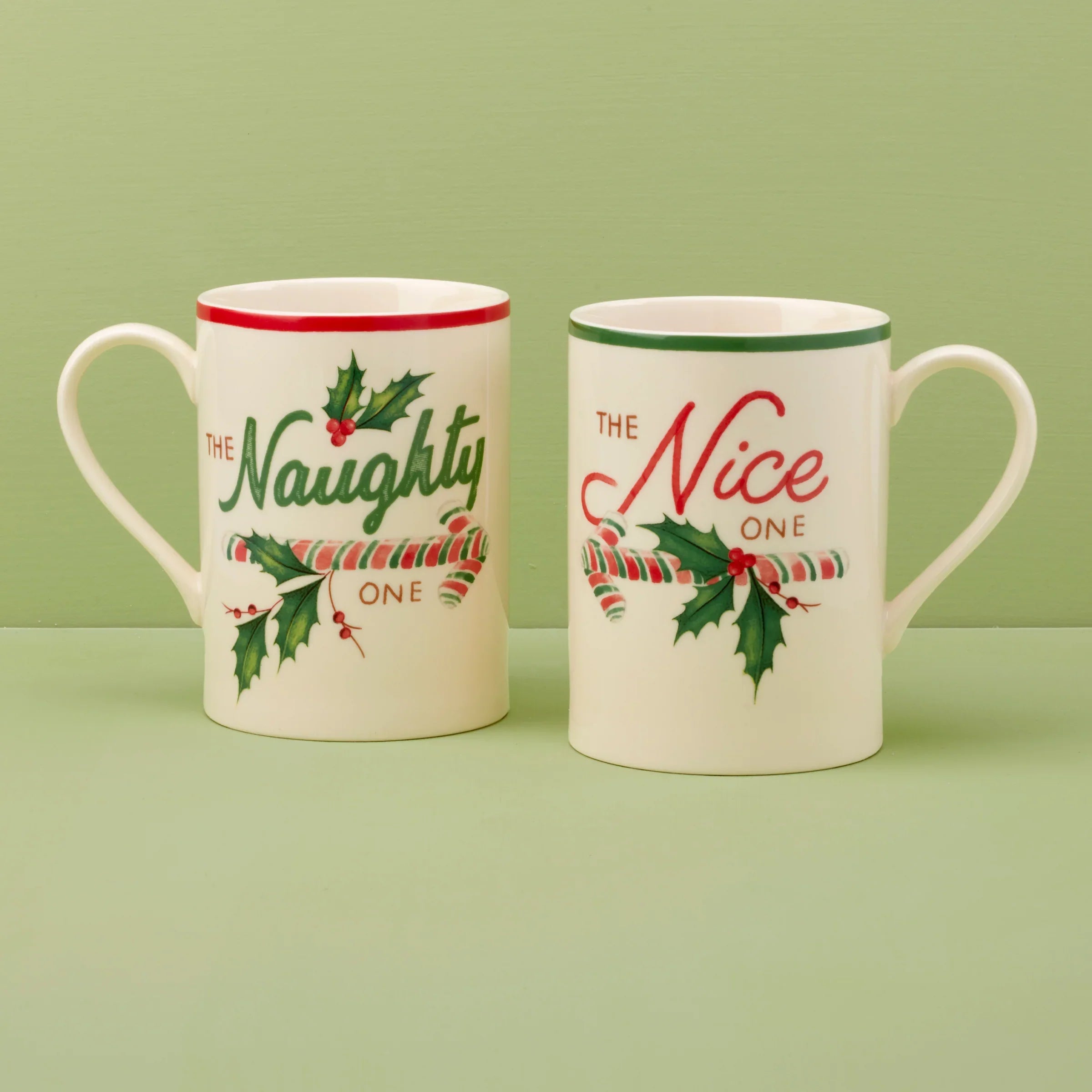 Send a message of joy and playfulness with these too-cute naughty & nice mugs. These cheerful pieces match our Holiday dinnerware to make your Christmas table coordinated, eye-catching, and lots of fun.
