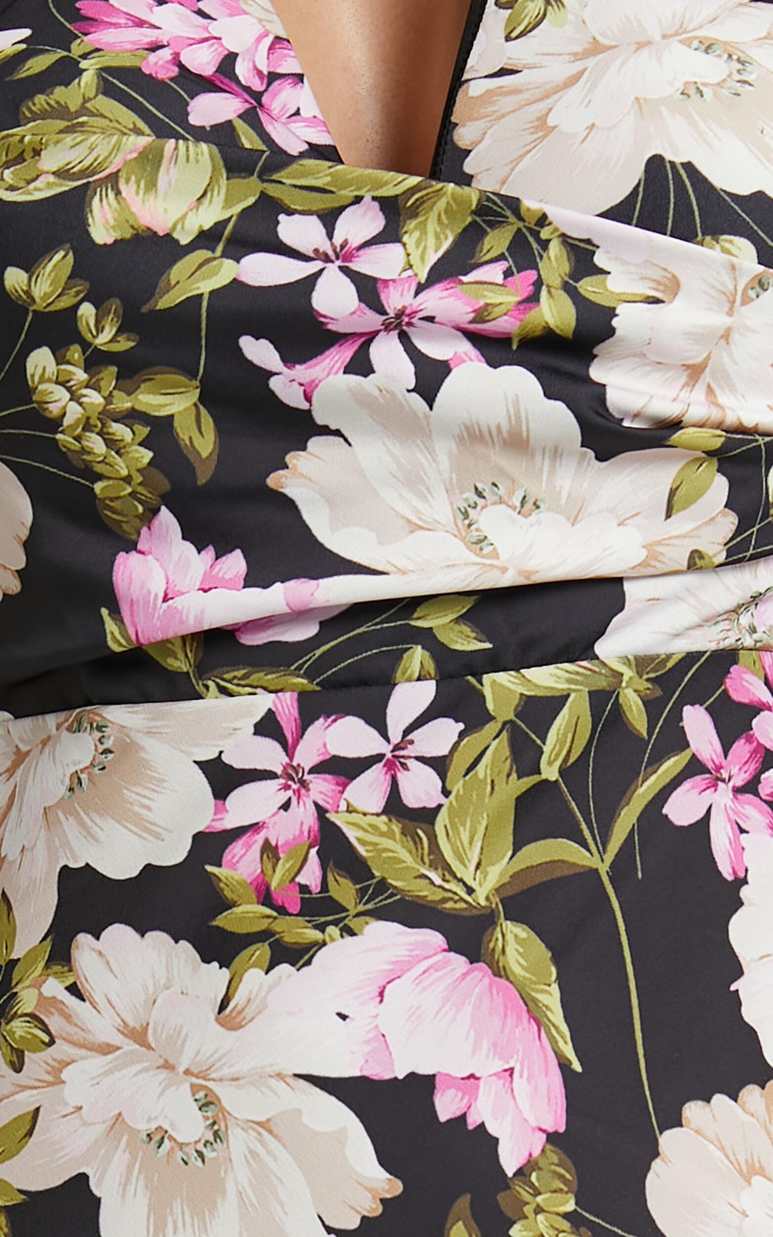 Elevate your evening ensemble with the Janise Maxi Dress in Midnight Floral. This stunning cocktail dress features a V-neck wrap top detail that flatters all body types, while the thigh split adds a touch of allure. The black floral print against the midnight backdrop exudes sophistication and elegance, making it perfect for any special occasion. Made from soft and breathable fabric, this sleeveless maxi dress ensures utmost comfort throughout the night. Whether you're attending a wedding or going out for drinks with friends, the Janise Maxi Dress is sure to turn heads and make you feel like absolute royalty.