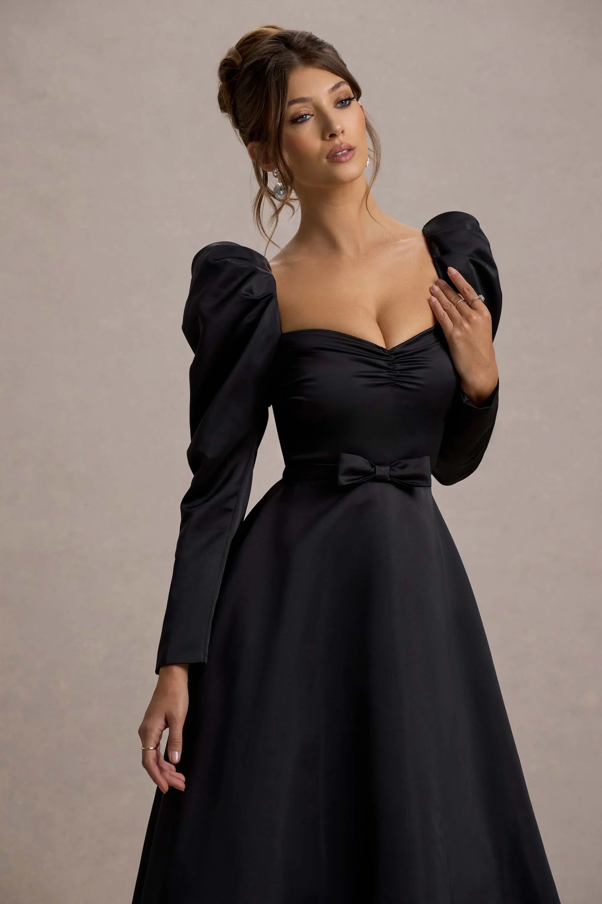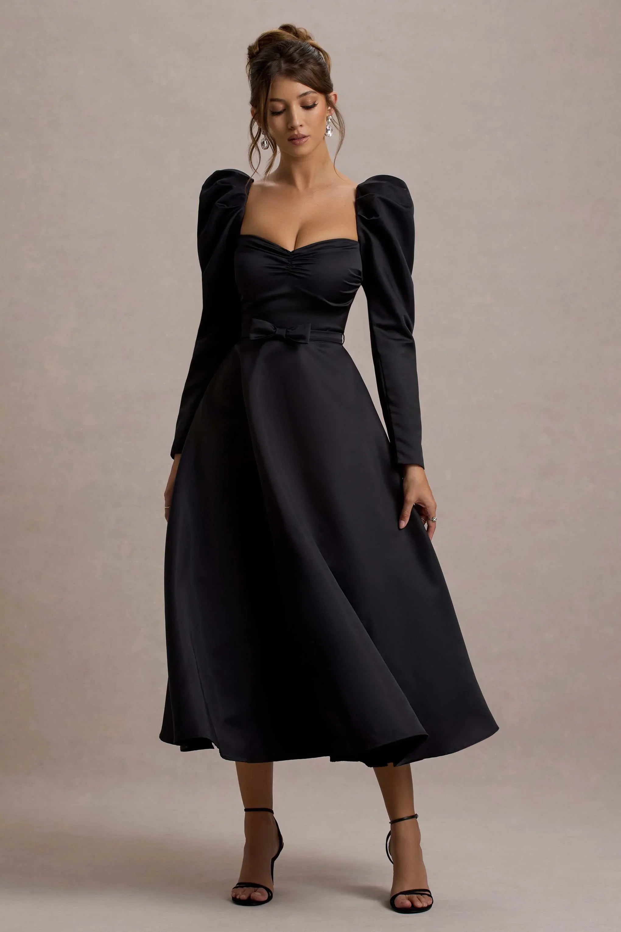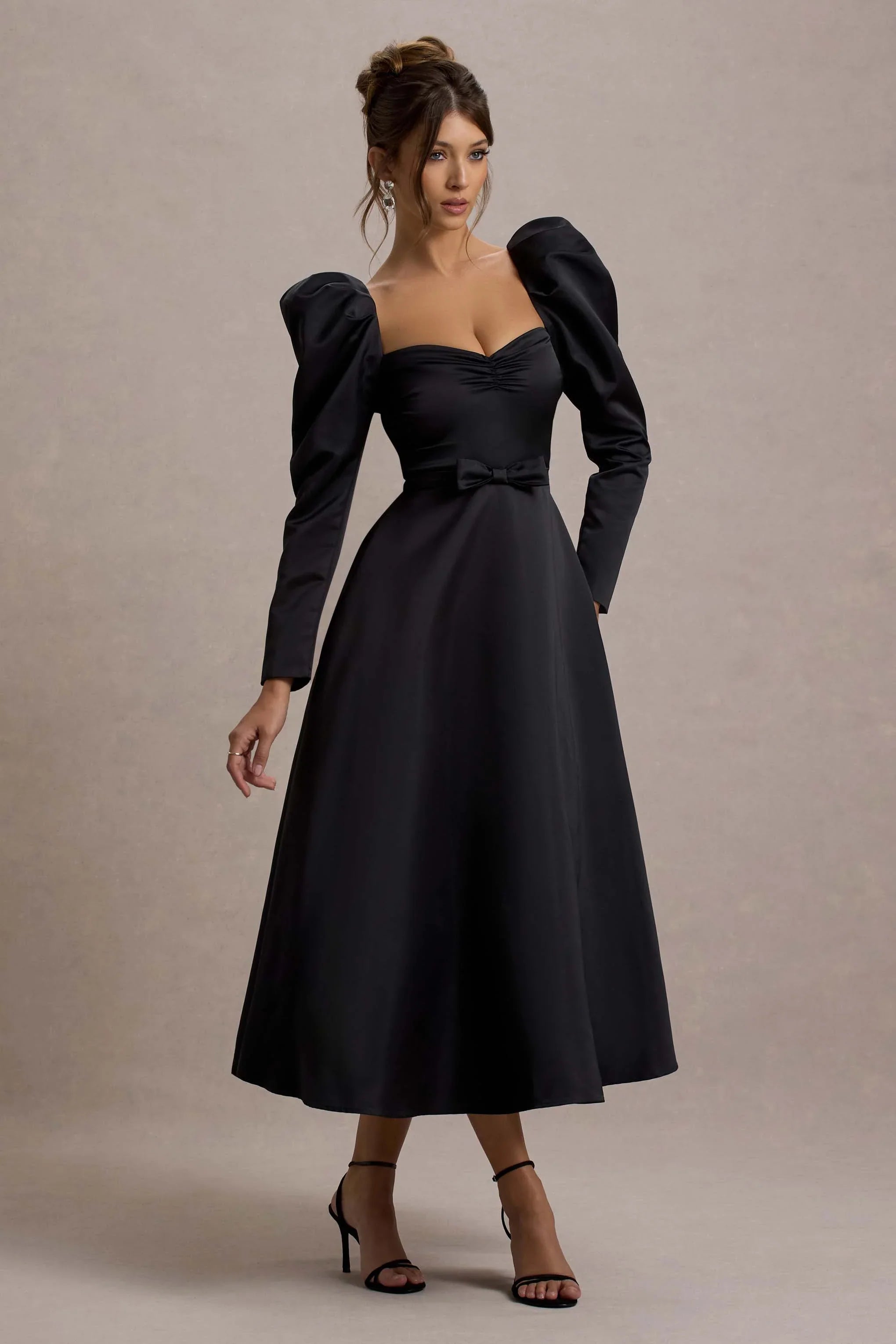 Defined by its classic silhouette with a modern twist, Kansas is the epitome of timeless elegance for any special occasion. Crafted from our premium crepe, this black midi dress features a chic square neckline and voluminous puff sleeves that bring both structure and sophistication. Finished with a sleek belt to accentuate your waist, Kansas exudes effortless style.