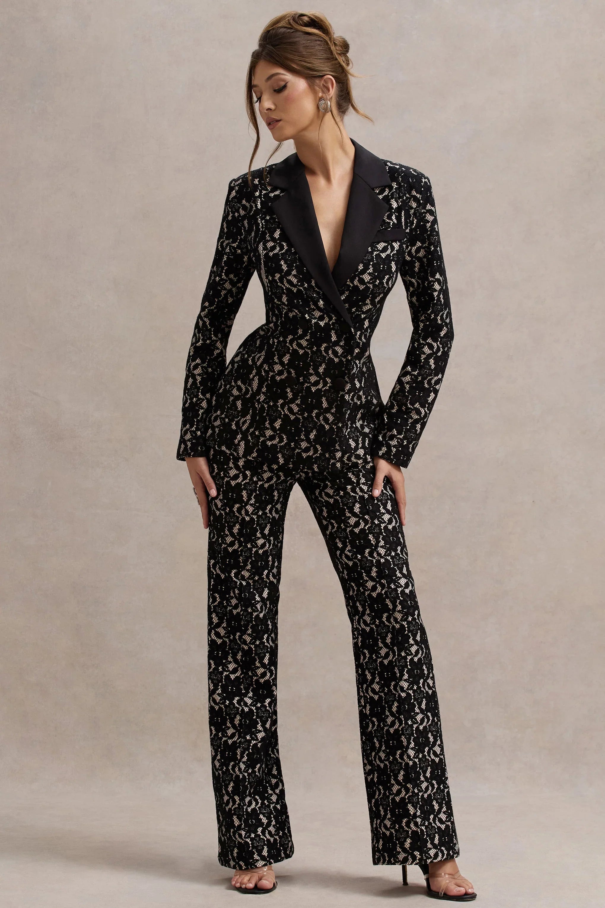 Whether you're in the office or out with friends, Kennedy is an elevated wardrobe essential. Designed in a black shade of our signature lace crepe, this tailored double breasted blazer boasts peak lapels, self-covered buttons and a mock welt pocket.