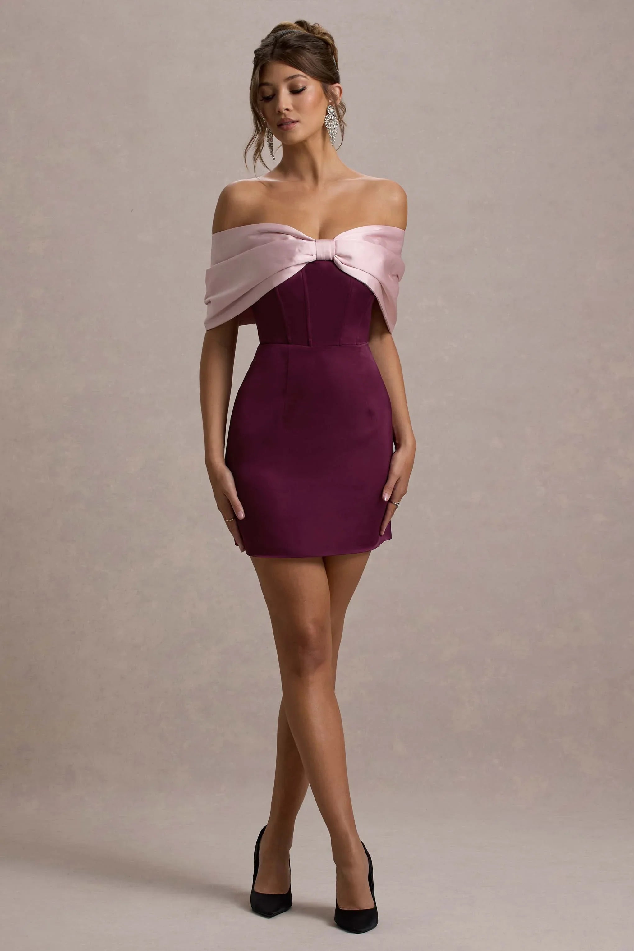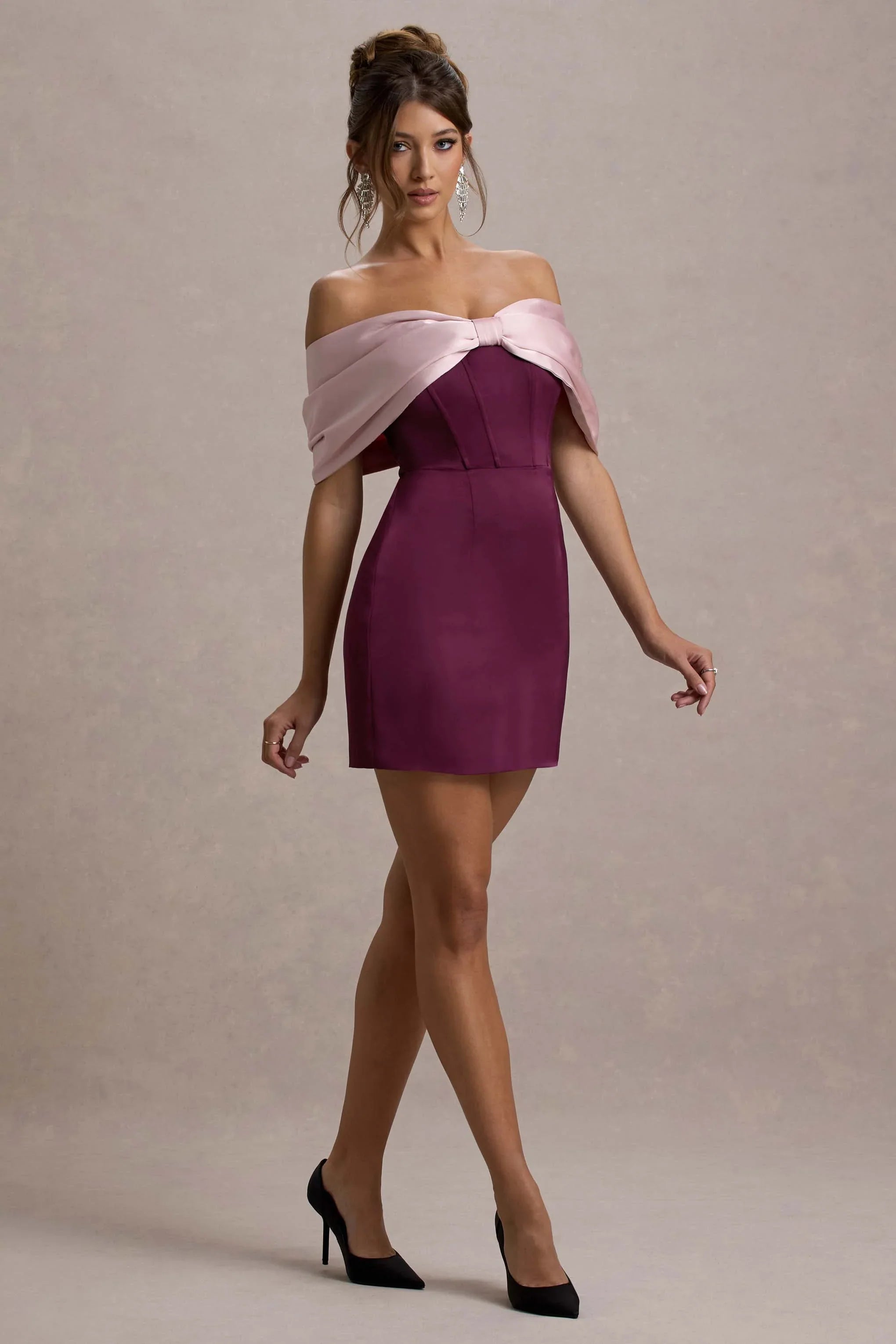 Party season calls for a mini like Linley. Designed in feminine shades of burgundy and pink, this playful satin mini dress is defined by its bow bardot neckline and flattering bodycon silhouette. Keep Linley at the forefront by styling yours with some golden accents like Libra.