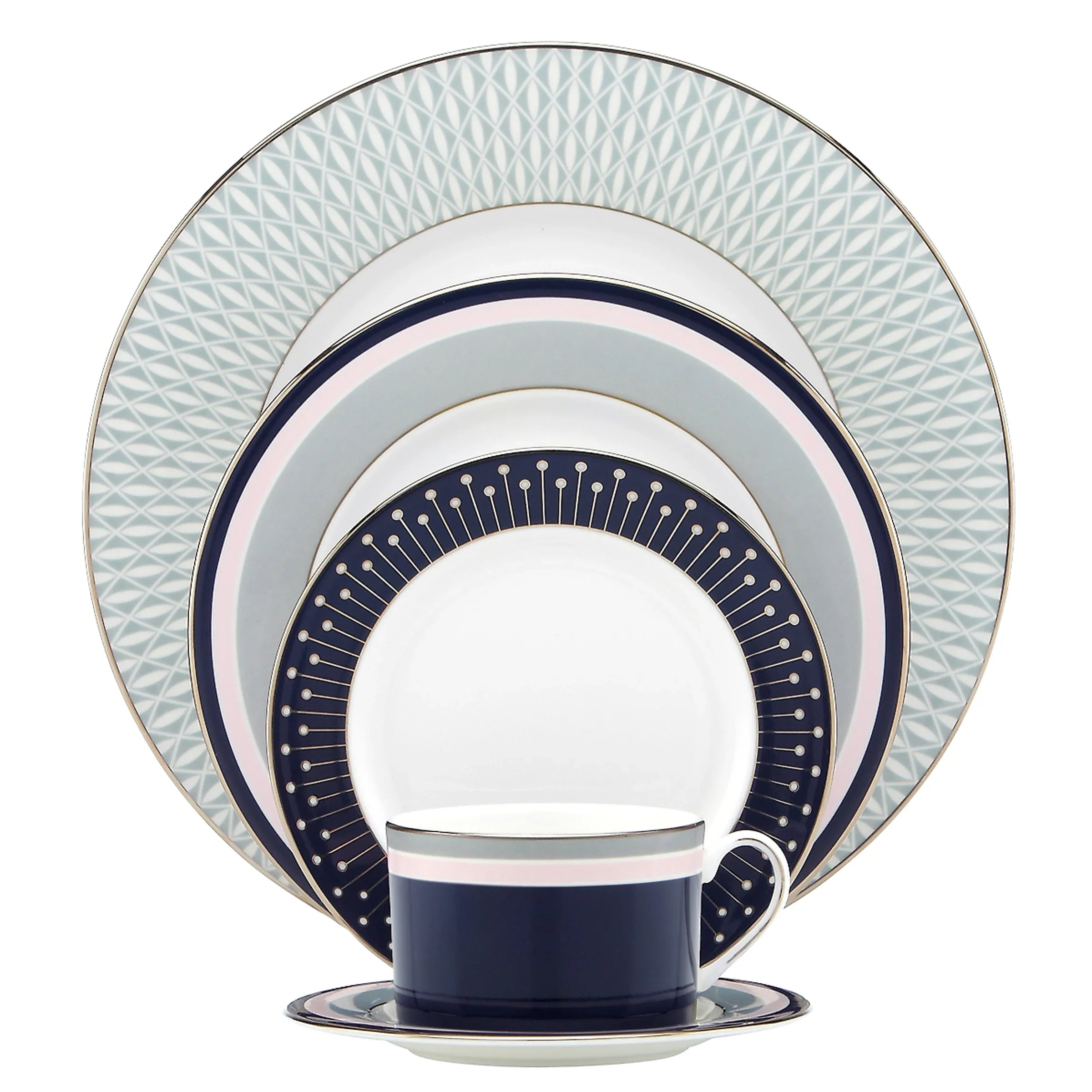 Special occasions shape up chic with the platinum-banded Mercer Drive 5-piece Place Setting. From Kate Spade New York, this dish is crafted from durable white bone china and is dishwasher-safe.