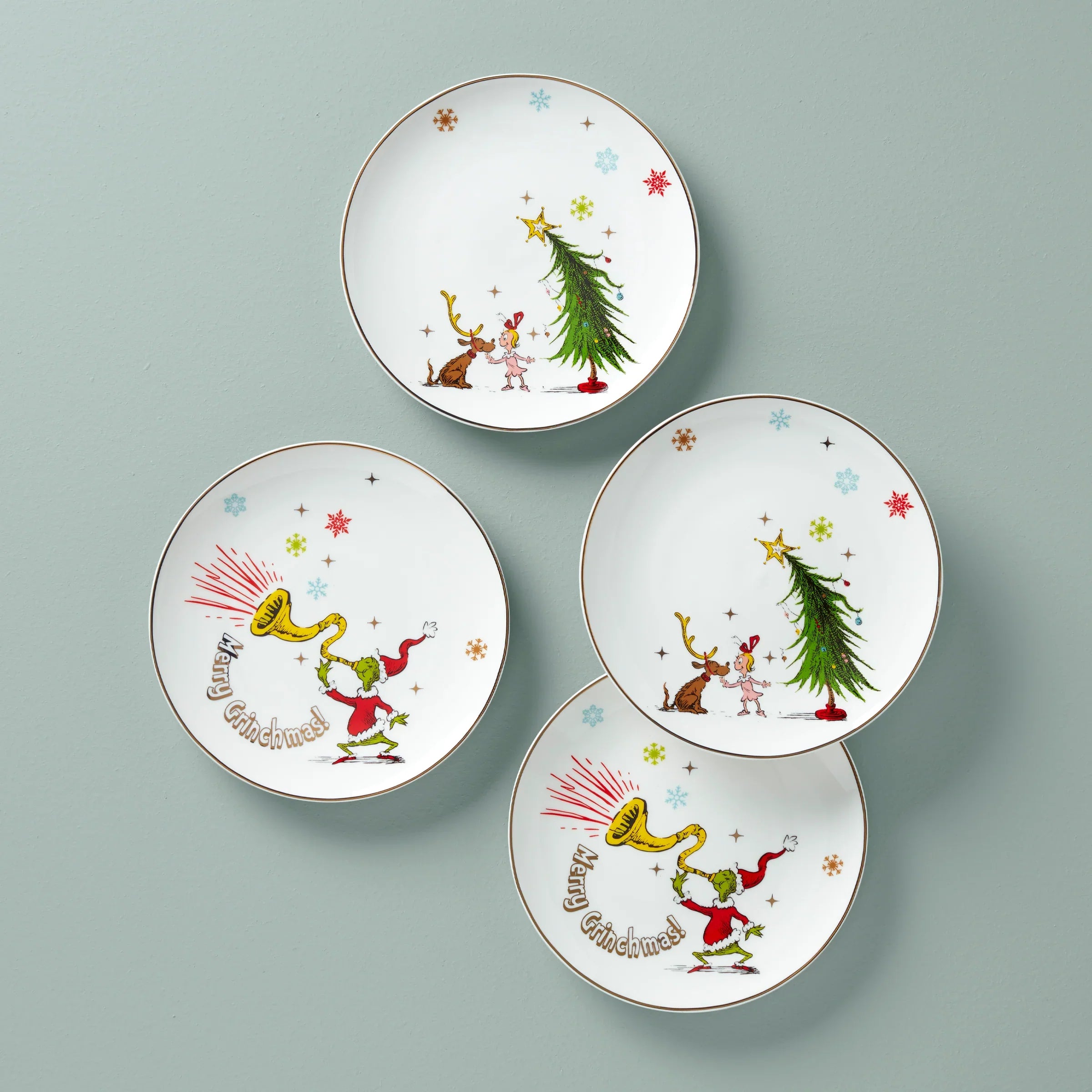 The Grinch is going to steal Christmas... and your heart! This lovely and entertaining set of accent plates features scenes of festive holiday cheer.