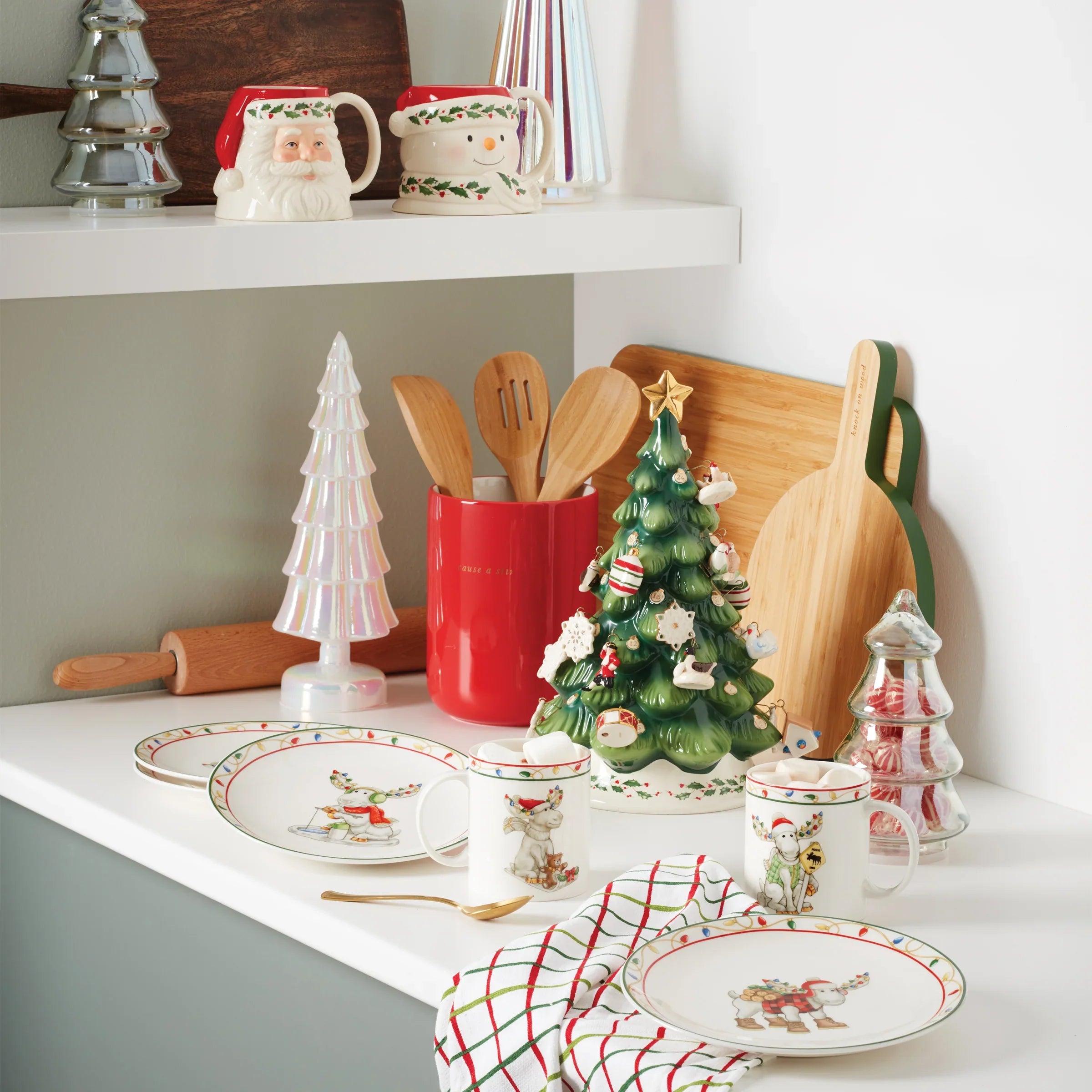 Ideal for enjoying a warm cup of cocoa with friends or loved ones, the Merry Marcel Moose 4-piece mug set features everyone's favorite holiday moose celebrating the season in a variety of scenes. Crafted of durable and versatile porcelain, this set is safe for the both the microwave and dishwasher.