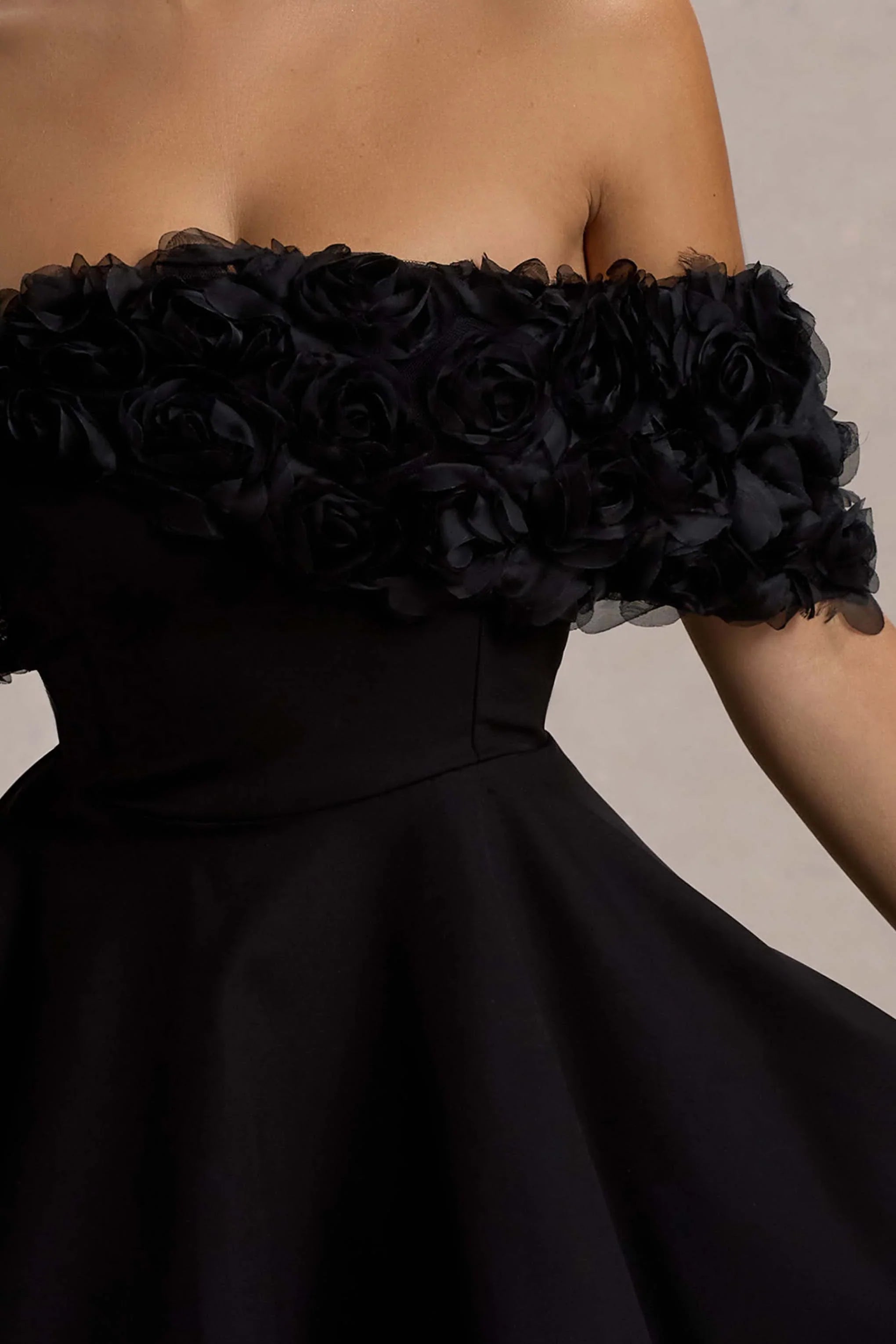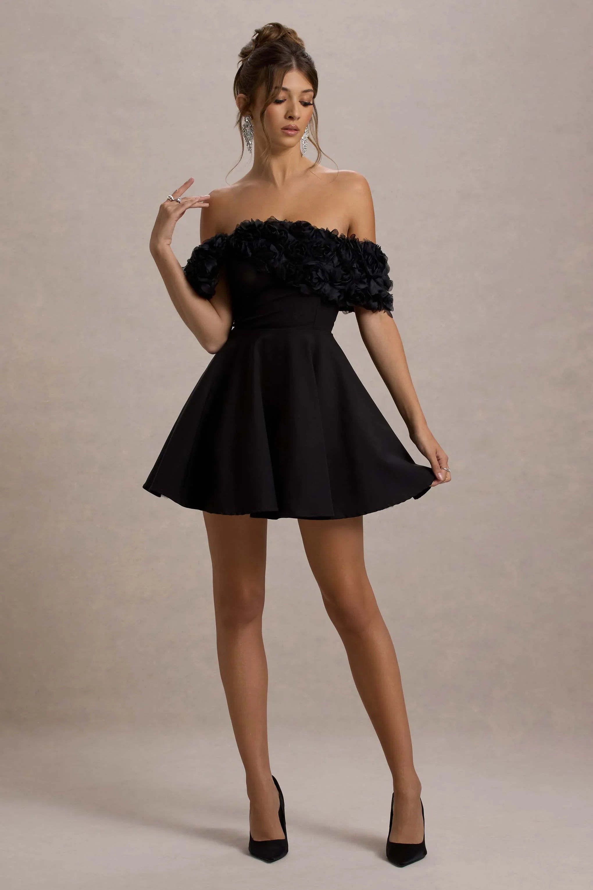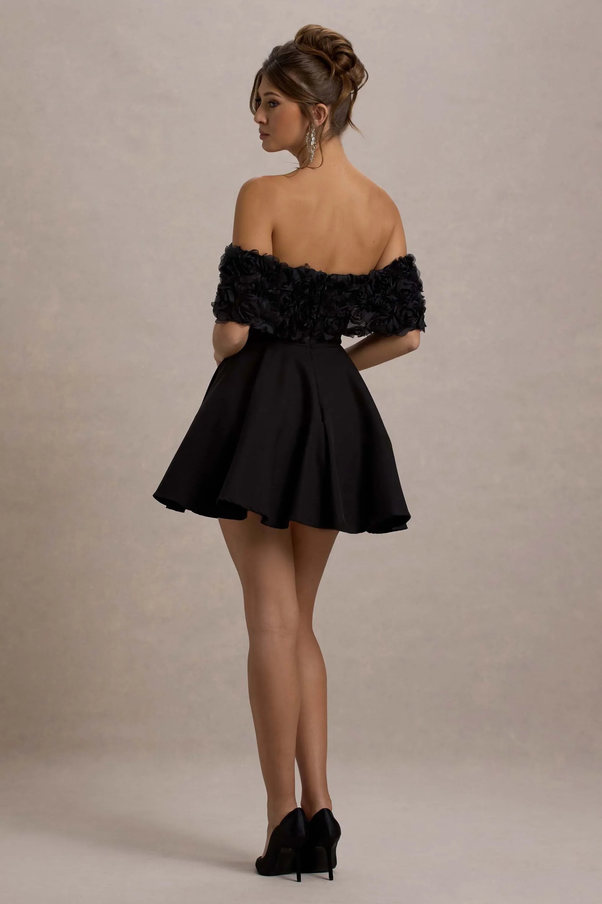 Opt for the wow factor in the latest Micro Muse mini, a party dress like no other. Curated in our premium black crepe with divine mesh floral detailing across its bardot neckline, this piece is the perfect blend of intricacy and glamour. Try styling yours with our signature Sea of Stars earrings and Bold Soul platform sandals for the ultimate evening look.