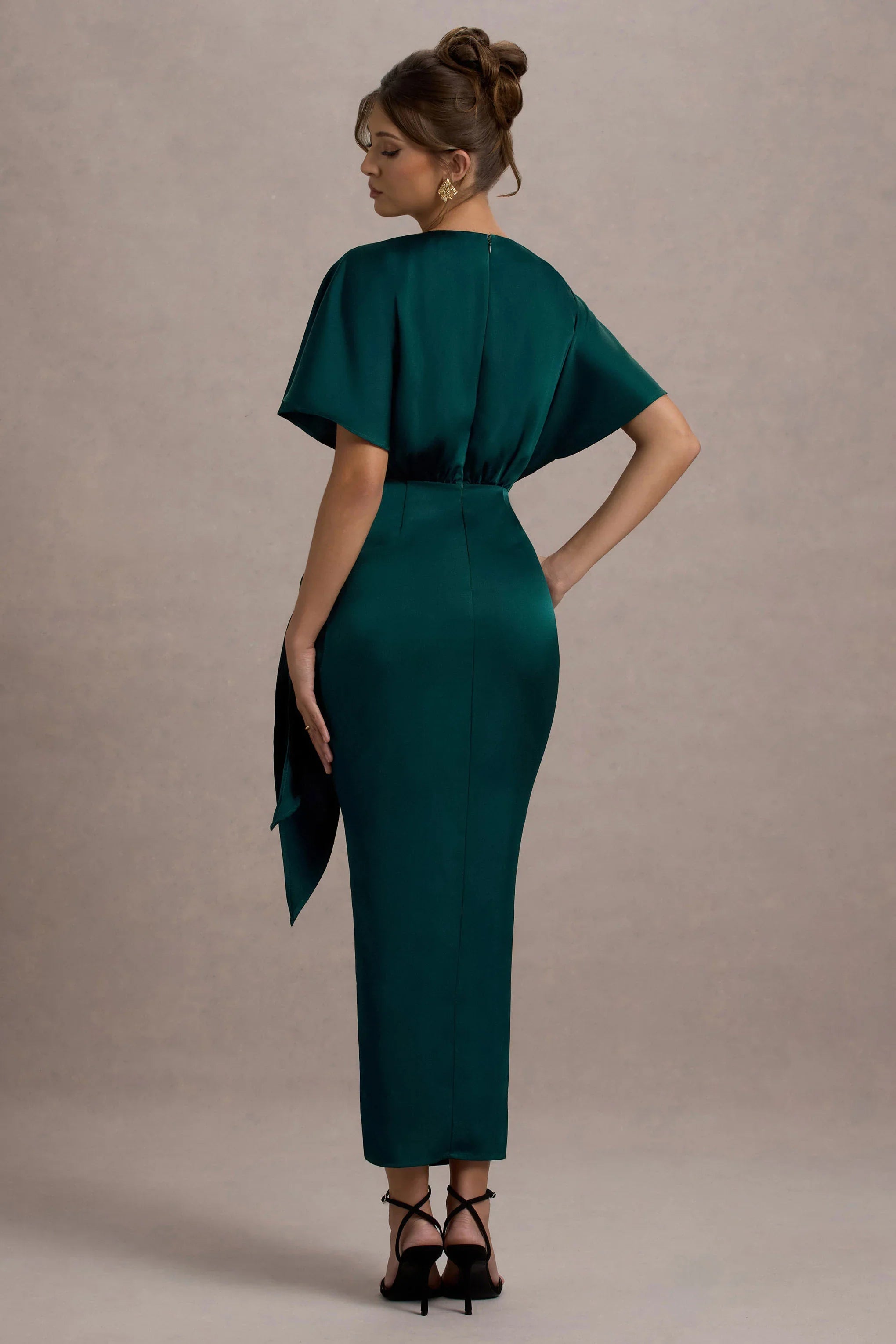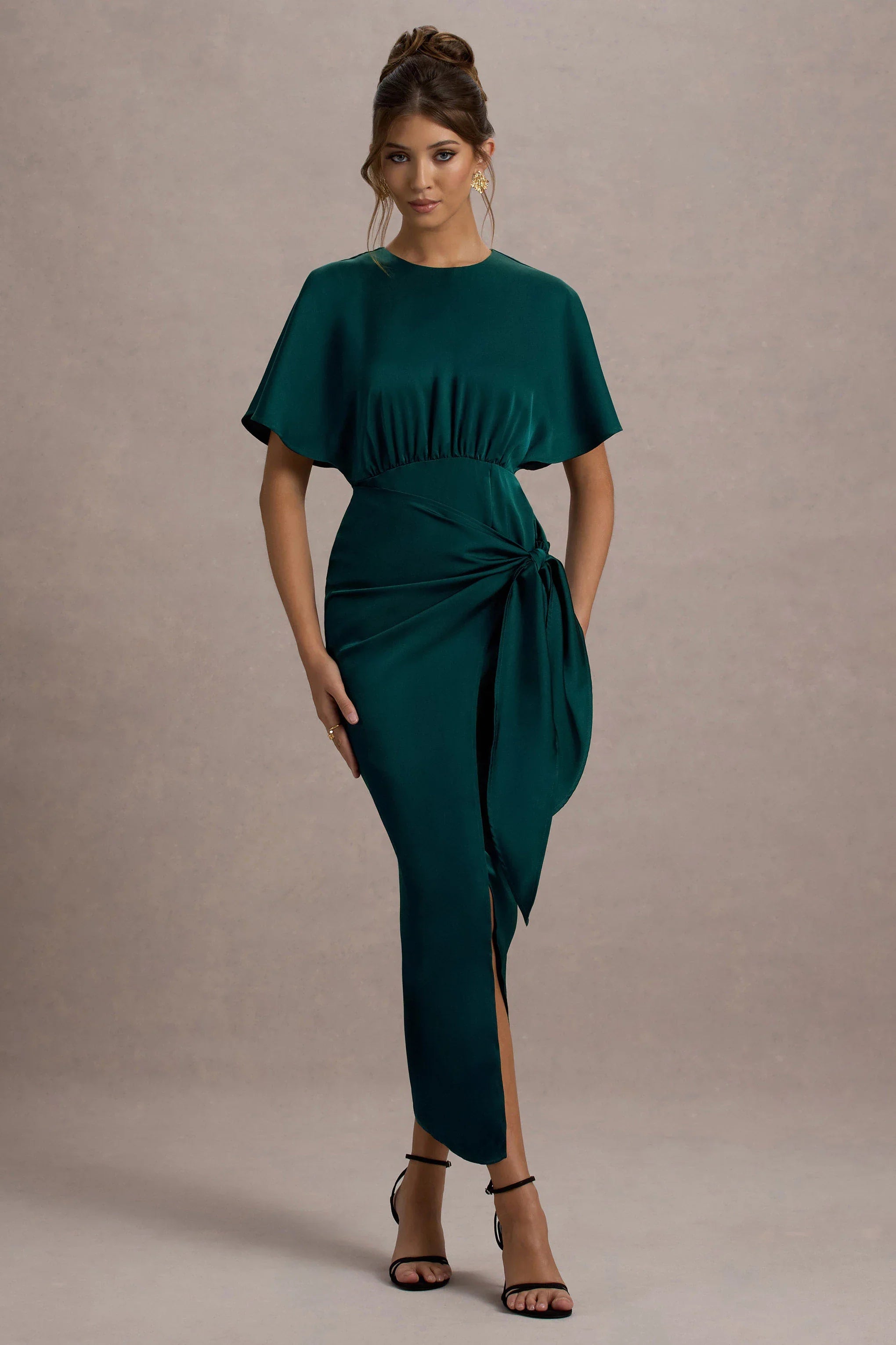 Mika is the epitome of effortless elegance, perfect for your next special occasion. Crafted from our bottle green-hued premium satin, this maxi flatters your silhouette with its classic wrap design. A high split adds a sultry touch, while the soft sheen of the satin ensures you shine all night long. The flowing fabric moves gracefully with every step, making Mika the ideal choice for a sophisticated evening. Pair it with delicate jewellery and strappy heels to keep this captivating dress in the spotlight at your next event.