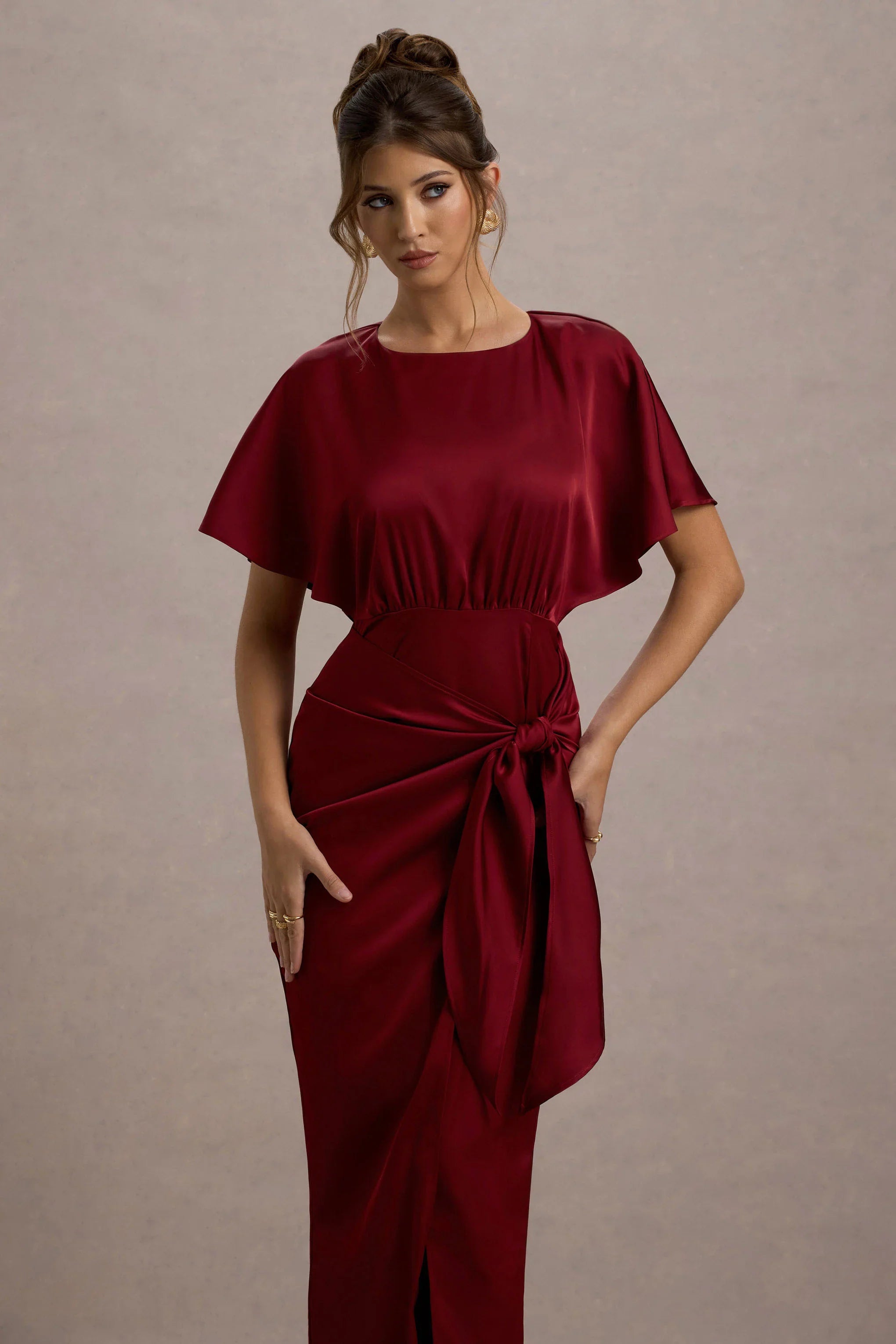 Mika is the epitome of effortless elegance, perfect for your next special occasion. Crafted from our port-hued premium satin, this maxi flatters your silhouette with its classic wrap design. A high split adds a sultry touch, while the soft sheen of the satin ensures you shine all night long. The flowing fabric moves gracefully with every step, making Mika the ideal choice for a sophisticated evening. Pair it with delicate jewellery and strappy heels to keep this captivating dress in the spotlight at your next event.
