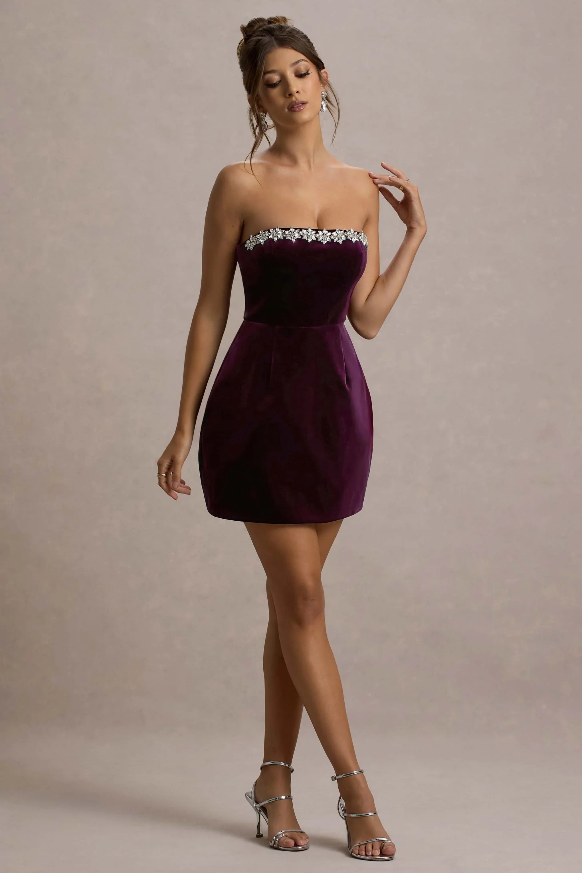 Effortlessly elegant, this premium mini is on everyones wish list this party season. Crafted in a structured silhouette of a soft stretch velvet, Naia is defined by its bandeau neckline trimmed with glistening diamante embellishments. Let Naia do the talking any pair yours with some matching diamante accents like Coralie.