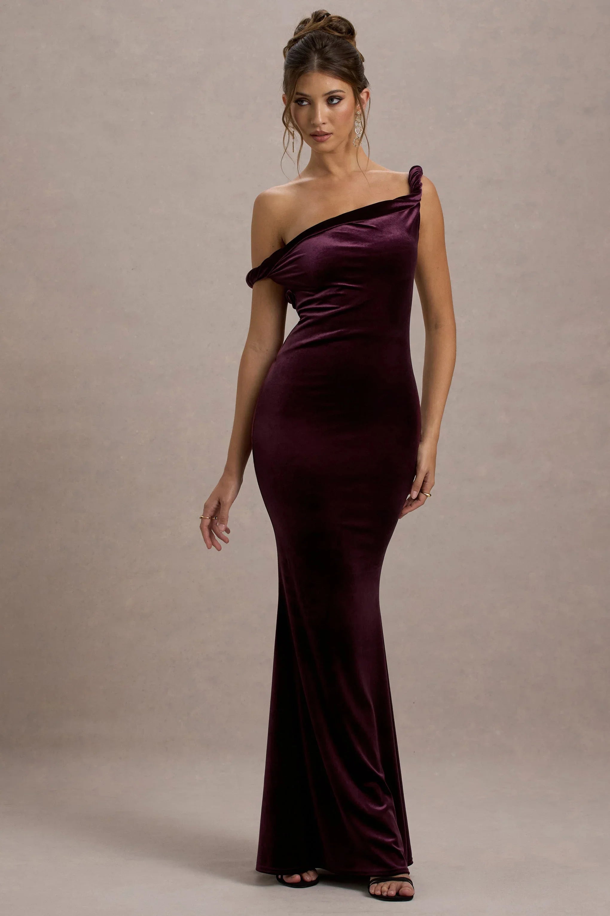 Defined by its luxurious fabric and bold design, Neeka is an unforgettable option for your most glamorous occasions. Crafted from our rich port velvet, this asymmetric maxi dress features a twisted front detail that effortlessly sculpts your silhouette, while the thigh-high split adds just the right amount of drama. The sumptuous velvet creates a striking, curve-hugging fit, and the unique asymmetric hemline ensures you stand out from the crowd. Keep Neeka at the forefront of your look by pairing it with sleek, pointed heels and delicate jewelry.
