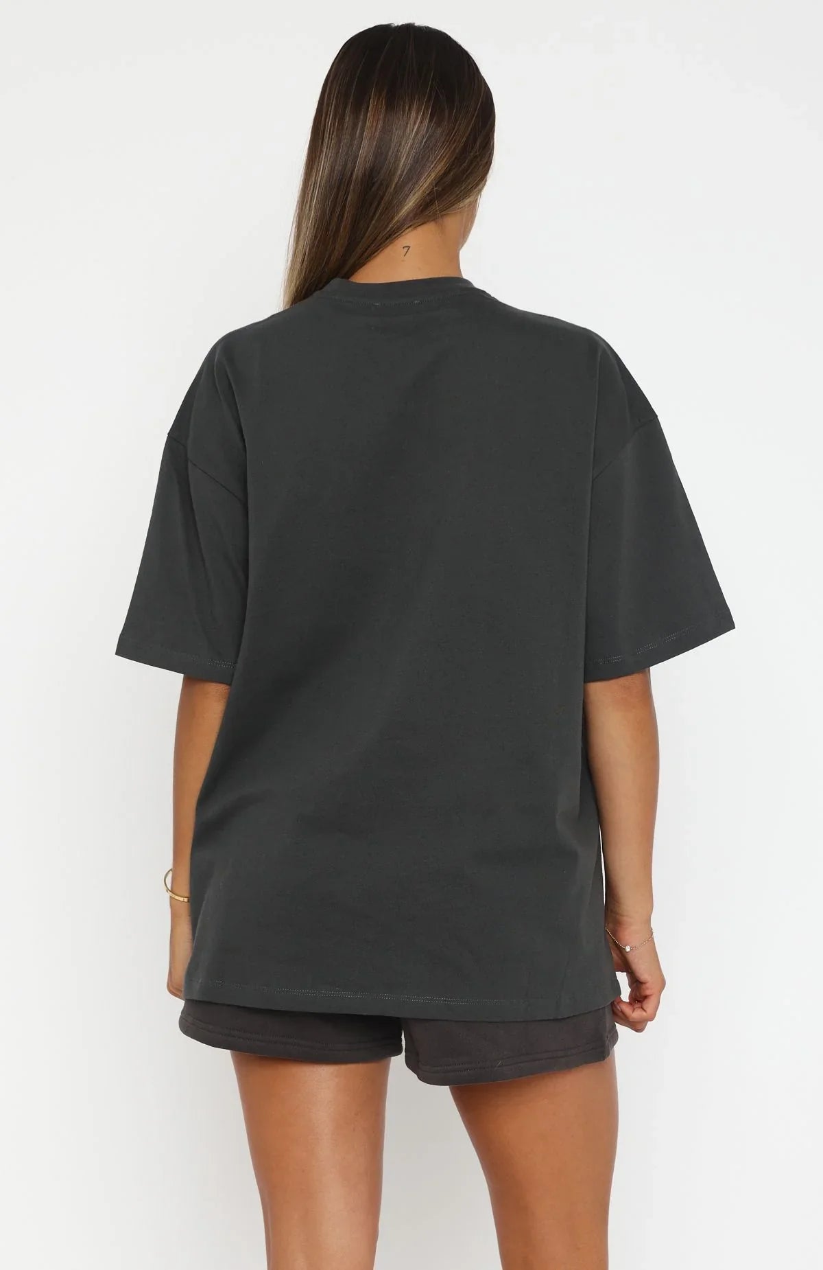 No need to steal your boyfriend's clothes when you have the Offstage Oversized Tee in Shadow. It is an oversized fit with slouch shoulders, round neckline, and a puff print graphic centre front. Match with the Offstage Lounge Shorts or Sweatpants! We also love this paired with your favourite White fox denim and fresh kicks.