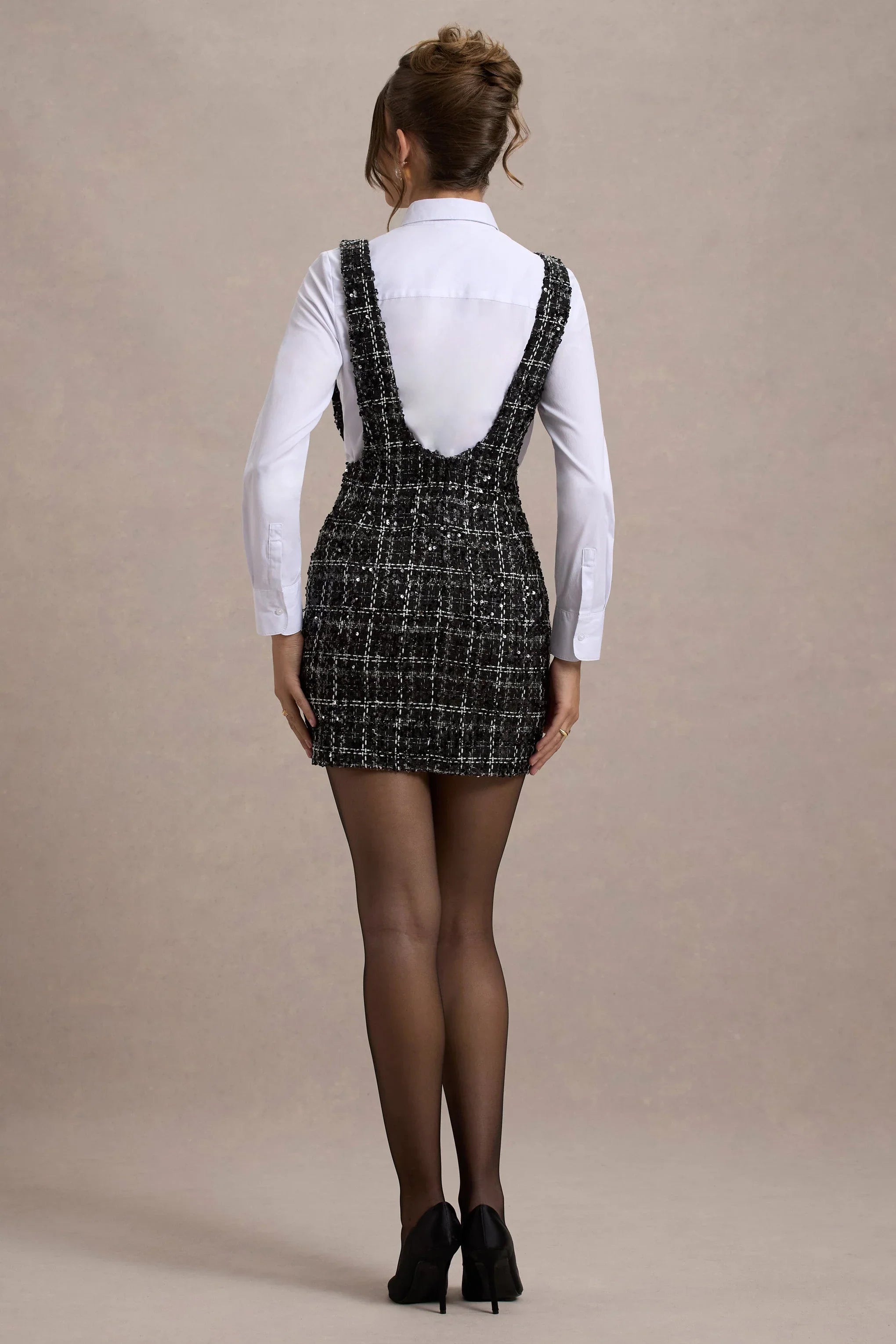 Whether you're at the office or out for dinner, Oxford is a charming choice. Expertly designed in a timeless black boucle, this premium pinafore boasts a scoop neckline, wide shoulder straps and a lightly sequinned finish.
