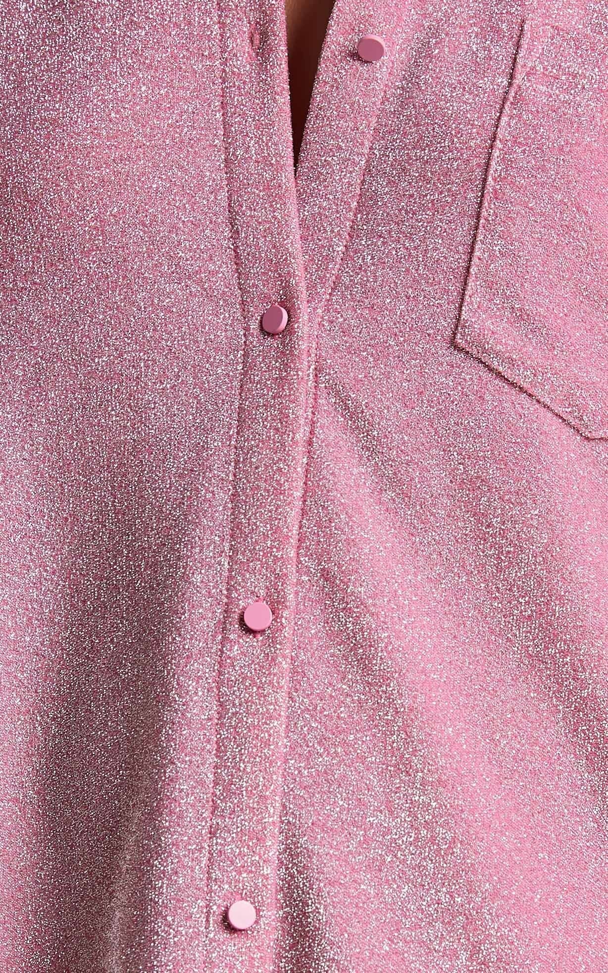 Get ready to turn heads in the Ruri Mini Dress! This sparkly oversized shirt dress is perfect for parties and festivals. Its playful pink color adds a fun pop to any outfit, while the collar gives it a stylish edge. Made from comfortable nylon fabric, this dress is both flirty and flattering. With its mini length and long sleeves, you'll be able to dance the night away in style. So go ahead and add some sparkle to your wardrobe with the Ruri Mini Dress - you won't regret it!