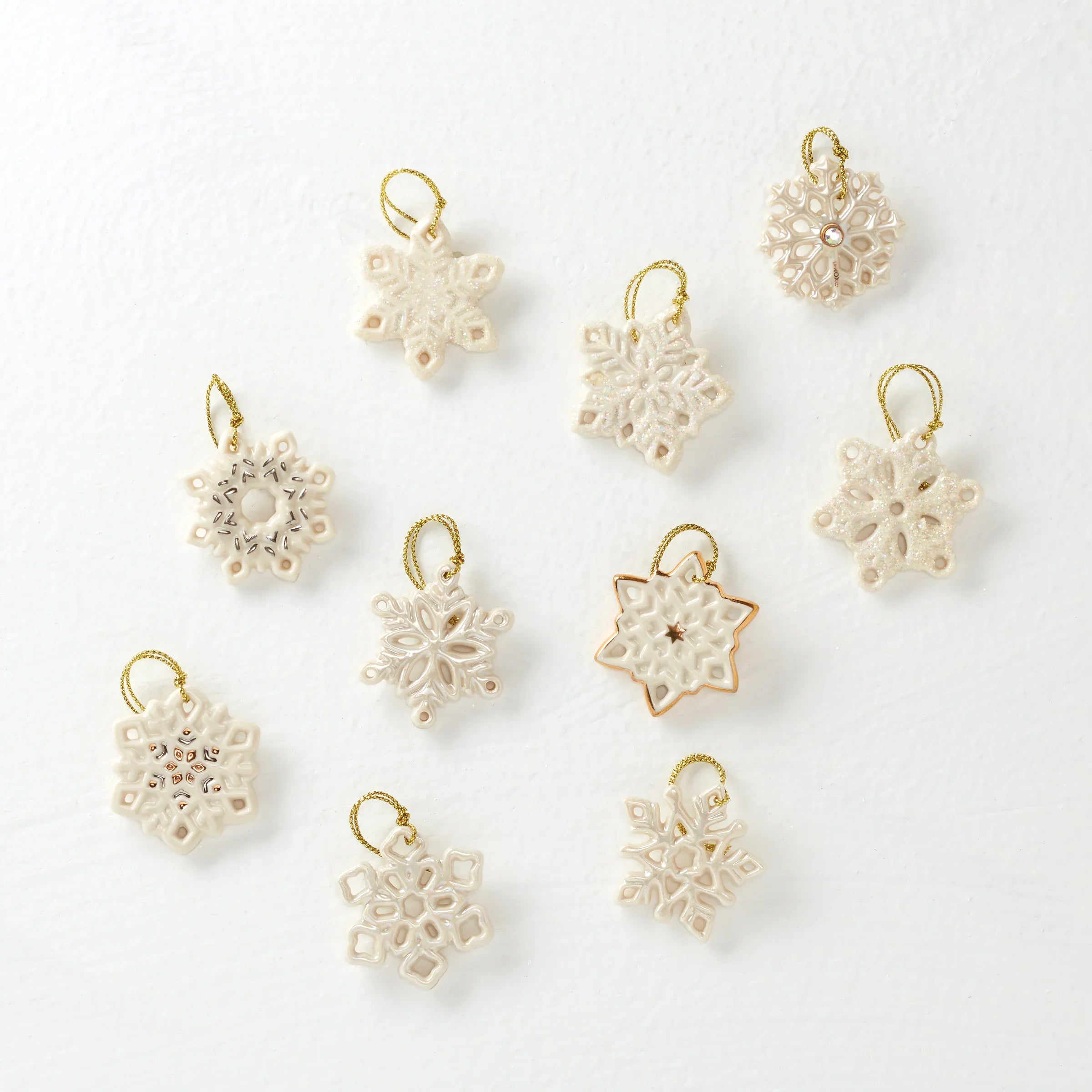 Perfect for the winter season, this 10-piece set comes with mini snowflake ornaments for decorating your Lenox tree. Each pristine snowflake is cut in one-of-a-kind shapes to make them truly unique.