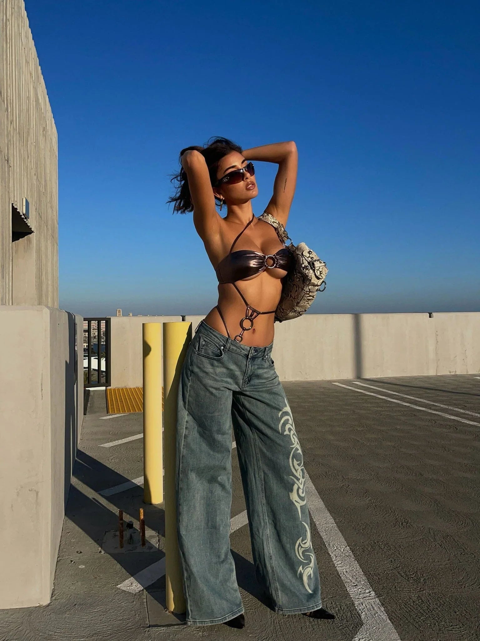 Pair back with our Anais Jeans in Denim and have the hottest night out fit! Style back with a mini skirt for the ultimate beach club look.