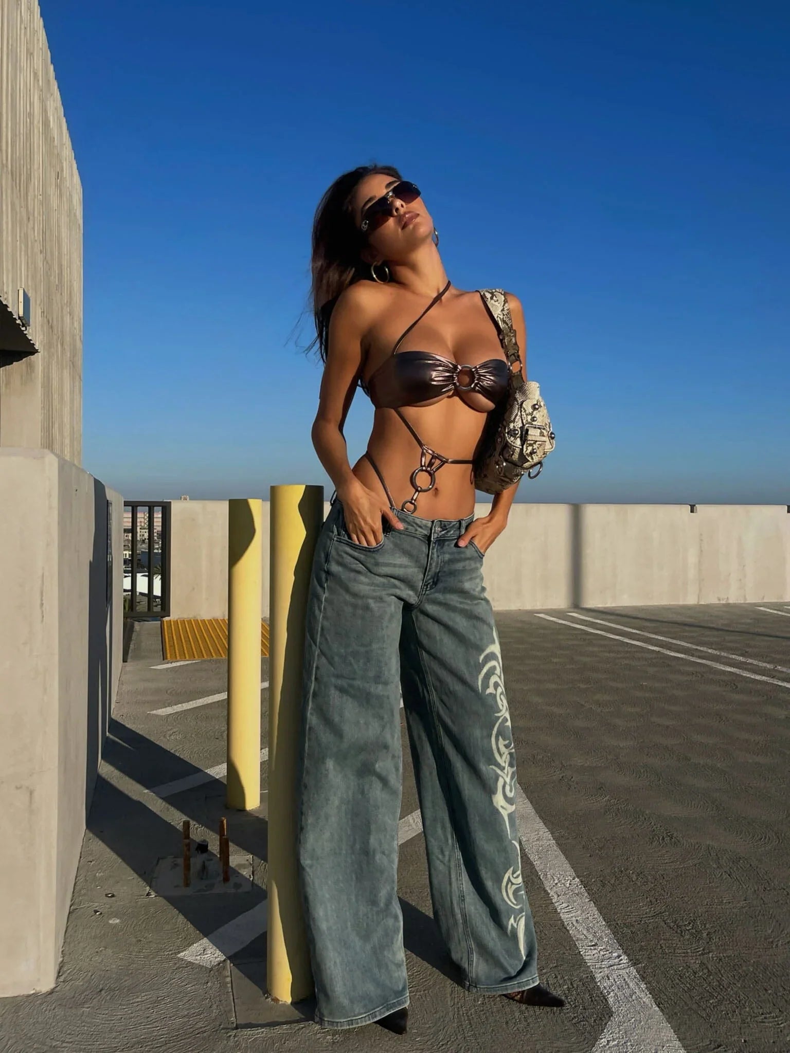 Pair back with our Anais Jeans in Denim and have the hottest night out fit! Style back with a mini skirt for the ultimate beach club look.
