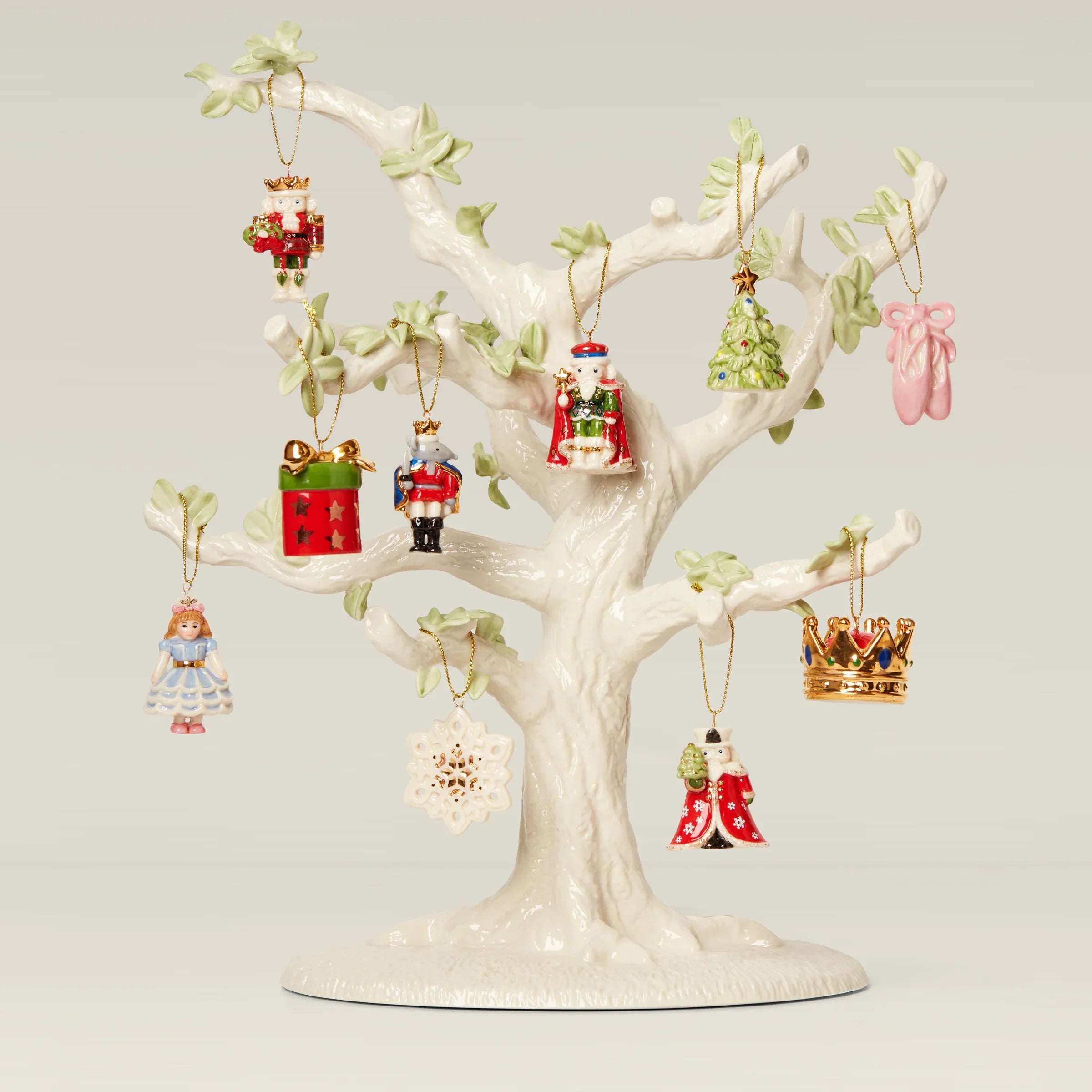The classic story of The Nutcracker comes to life with our charming Christmas set. This iconic porcelain tree comes with ten mini ornaments for decorating, including nutcrackers, a crown, the Mouse King and more. It's a lovely set for the ballet fan, storyteller or Christmas lover on your list.