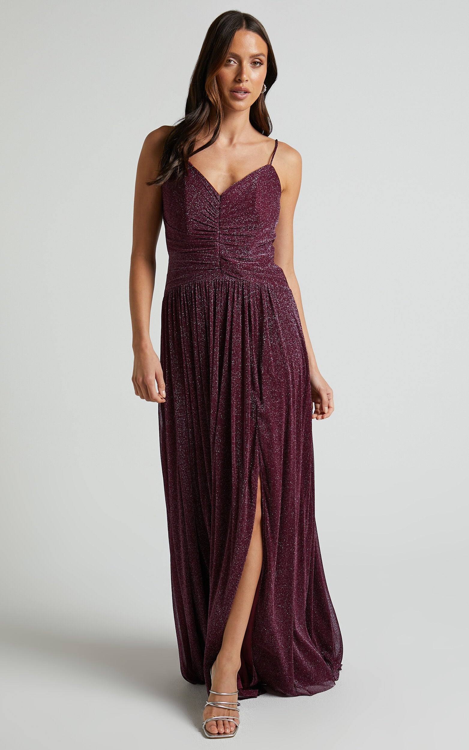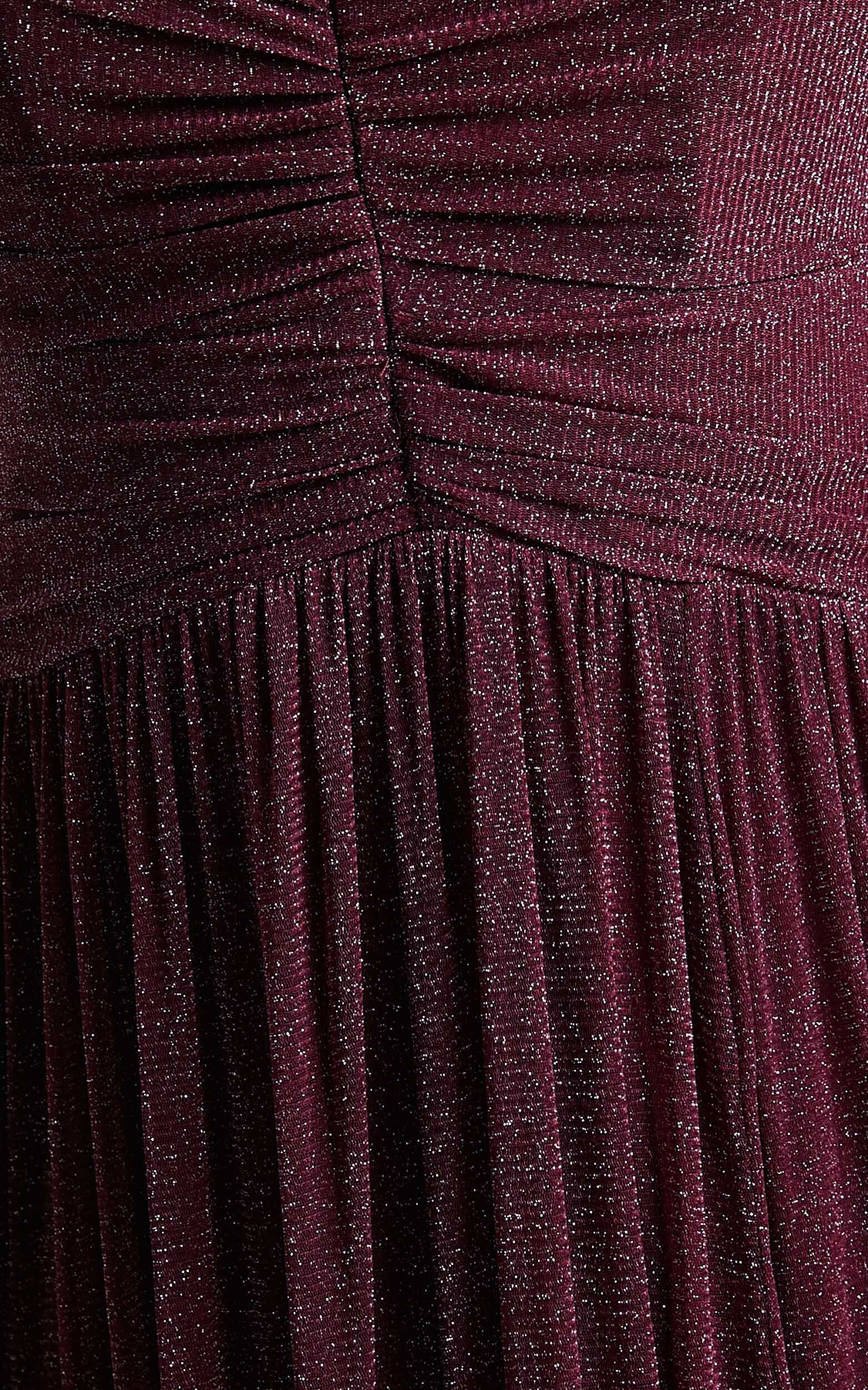 Get ready to turn heads in our Vivienne Maxi Dress - Sweetheart Ruched Bodice In Burgundy. This stunning wine-colored cocktail dress is the perfect choice for your next formal event or winter soir��e. With its sweetheart neckline and ruched bodice, it flatters your figure while adding a touch of romance to your look. The sleeveless design and maxi length give this dress a timeless elegance that will make you feel like a true queen. Made from high-quality tulle and polyester, this dress is not only stylish but also comfortable to wear all night long. Whether you're attending a wedding, gala, or simply want to feel fabulous at an evening out, our Vivienne Maxi Dress is guaranteed to make you shine bright like the star you are.