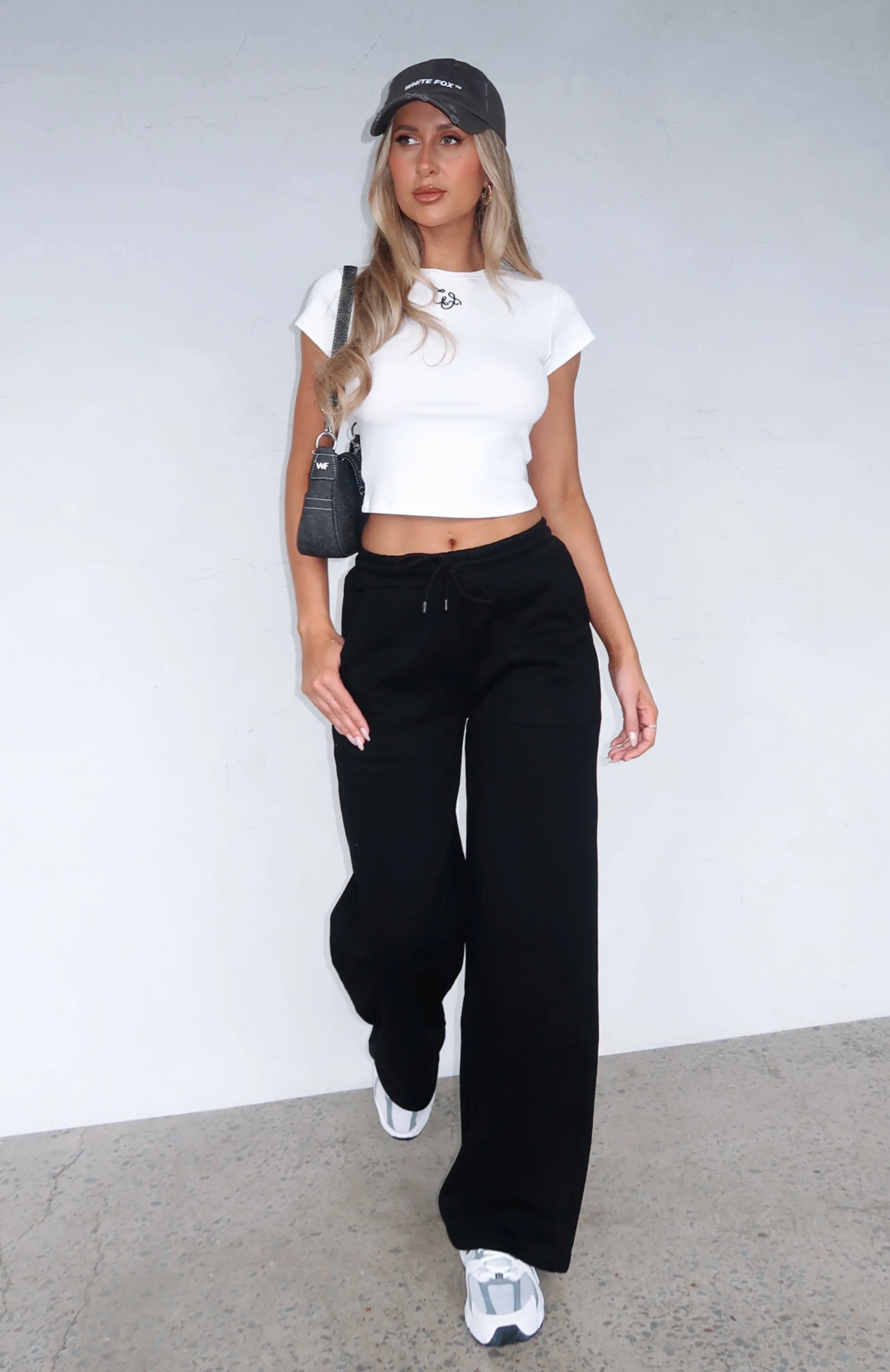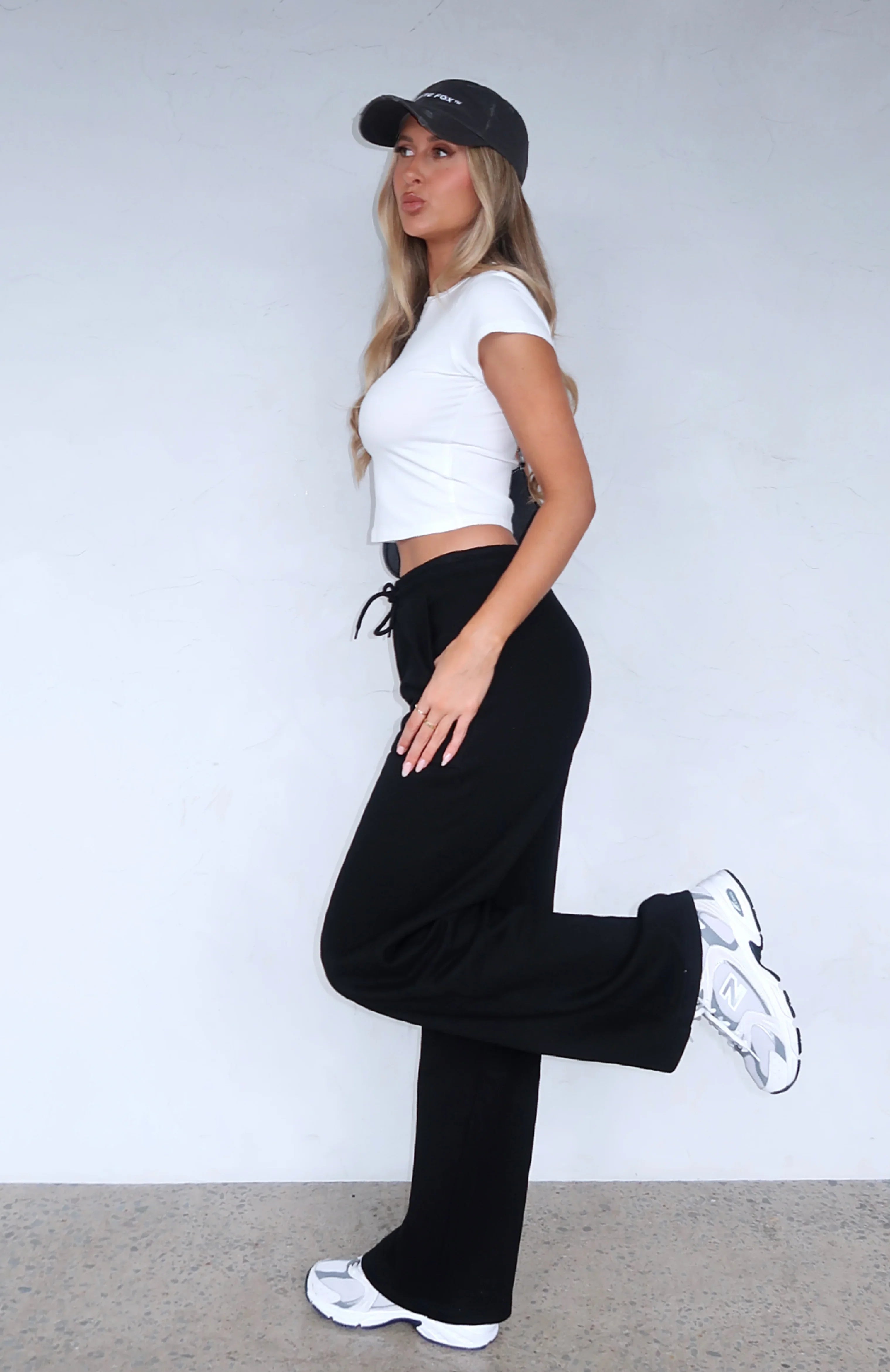 Spoil yourself with comfort. The You'd Love It Here Sweatpants Black in features a thick elasticated waistband with drawstring, soft fabric and self lined, high rise fit and straight leg design. Pair with a fitted tee and your go-to snugs for lounge worthy fit'!